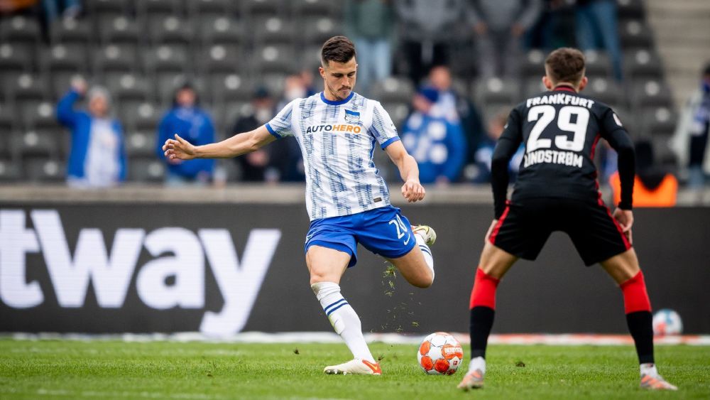 此前均惨遭三连败的柏林赫塔和法兰克福在本轮相遇,最终柏林赫塔1:4惨败。第17分钟,科斯蒂奇左路传中,冬季转会窗口加盟的克瑙夫将球顶入球门死角,法兰克福上半场1:0领先。
