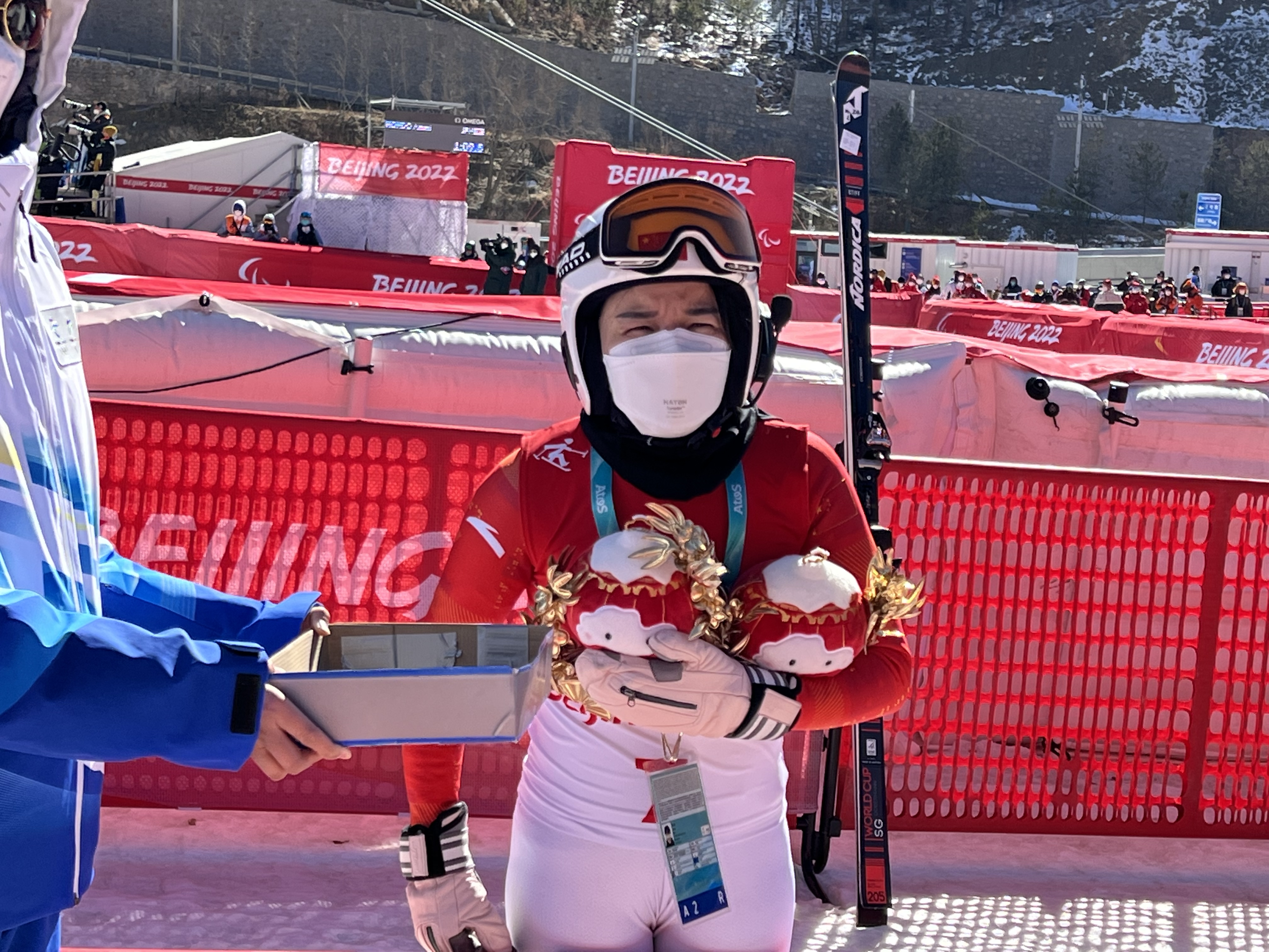 位于延庆的国家高山滑雪中心“雪飞燕”,见证了残奥运动员的速度与激情。在残奥高山滑雪比赛中,运动员们兼具平衡与速度的表现同样出色。“踩住”“左转”“快!快!”在领滑员的高声提示下,中国代表团运动员朱大庆漂亮地滑过弯道,稳稳到达终点,在残奥高山滑雪女子滑降视障组比赛中夺得银牌。一往无前、突破自我的劲头,令人敬佩。