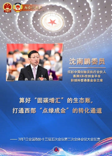 #2022两会同期声# #算好固碳增汇的生态账#7日上午,全国政协十三届五次会议举行第二次全体会议。12名委员作大会发言。沈南鹏委员发言。#全国两会2022#