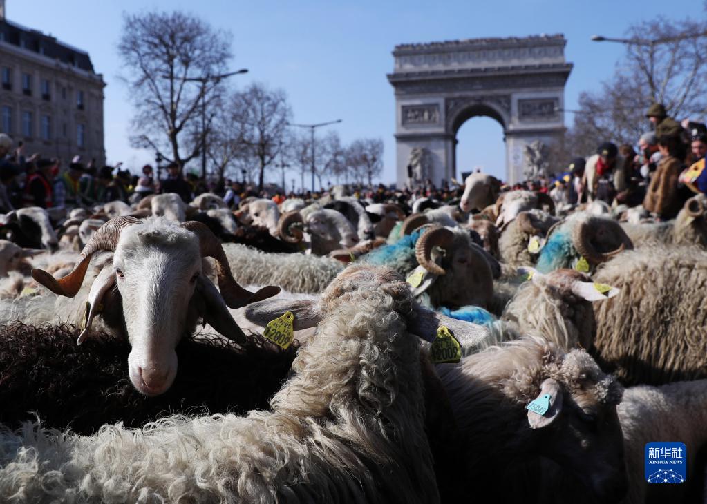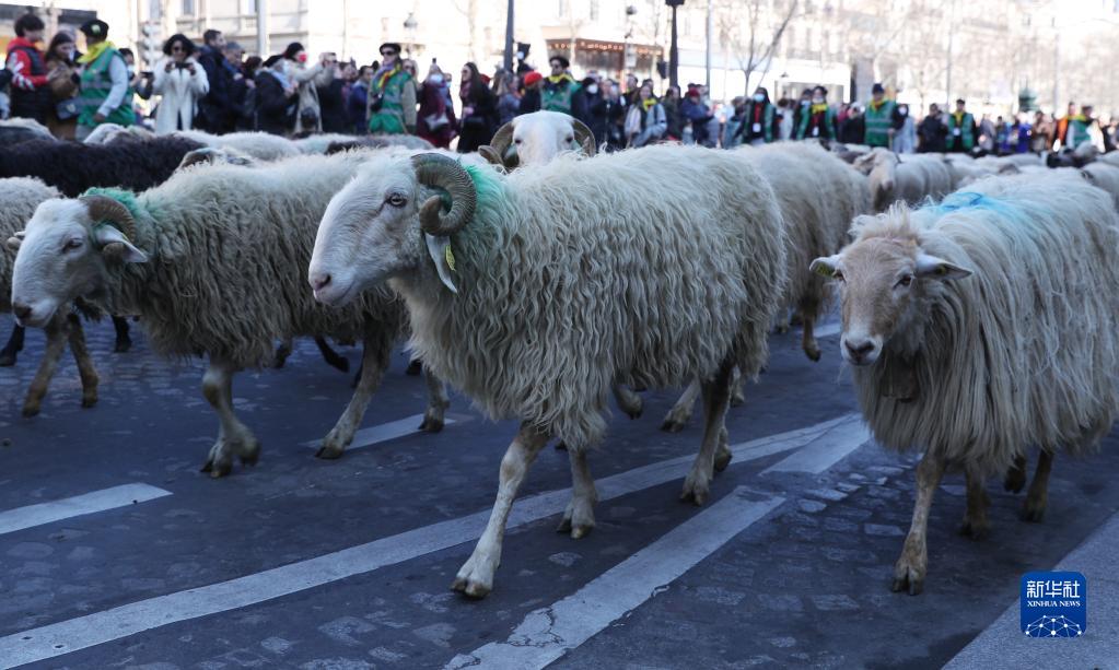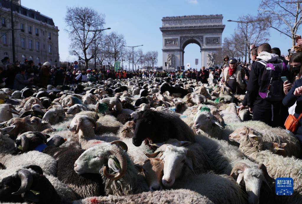 2022只绵羊当天出现在法国巴黎著名的香榭丽舍大街上,吸引众多市民前来围观。这场别开生面的活动是第58届法国国际农业博览会的闭幕活动。