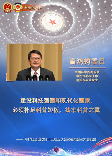 #2022两会同期声##补足科普短板铸牢科普之翼#7日下午,全国政协十三届五次会议举行视频会议。12名委员作大会发言。高鸿钧委员代表无党派人士界发言。#全国两会2022#