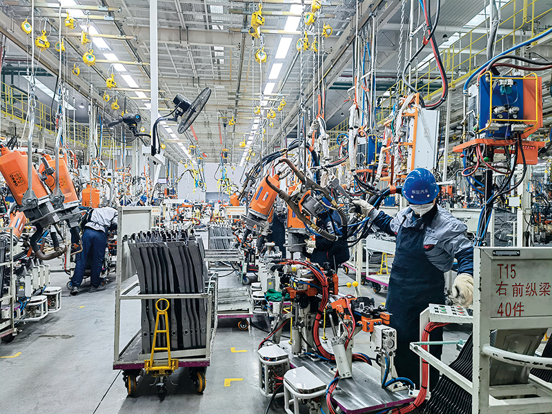 2022年2月9日,工人在振宜汽车生产线上工作 陈诺摄/本刊