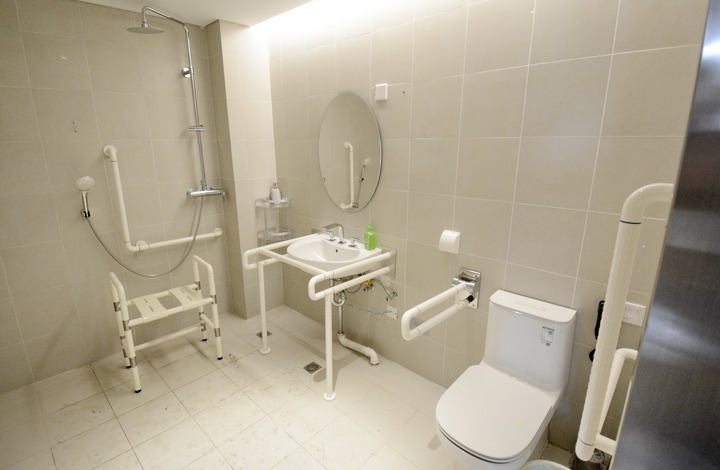2021年7月15日拍摄的北京延庆赛区冬奥村/冬残奥村房间里的无障碍设施。新华社记者李欣摄