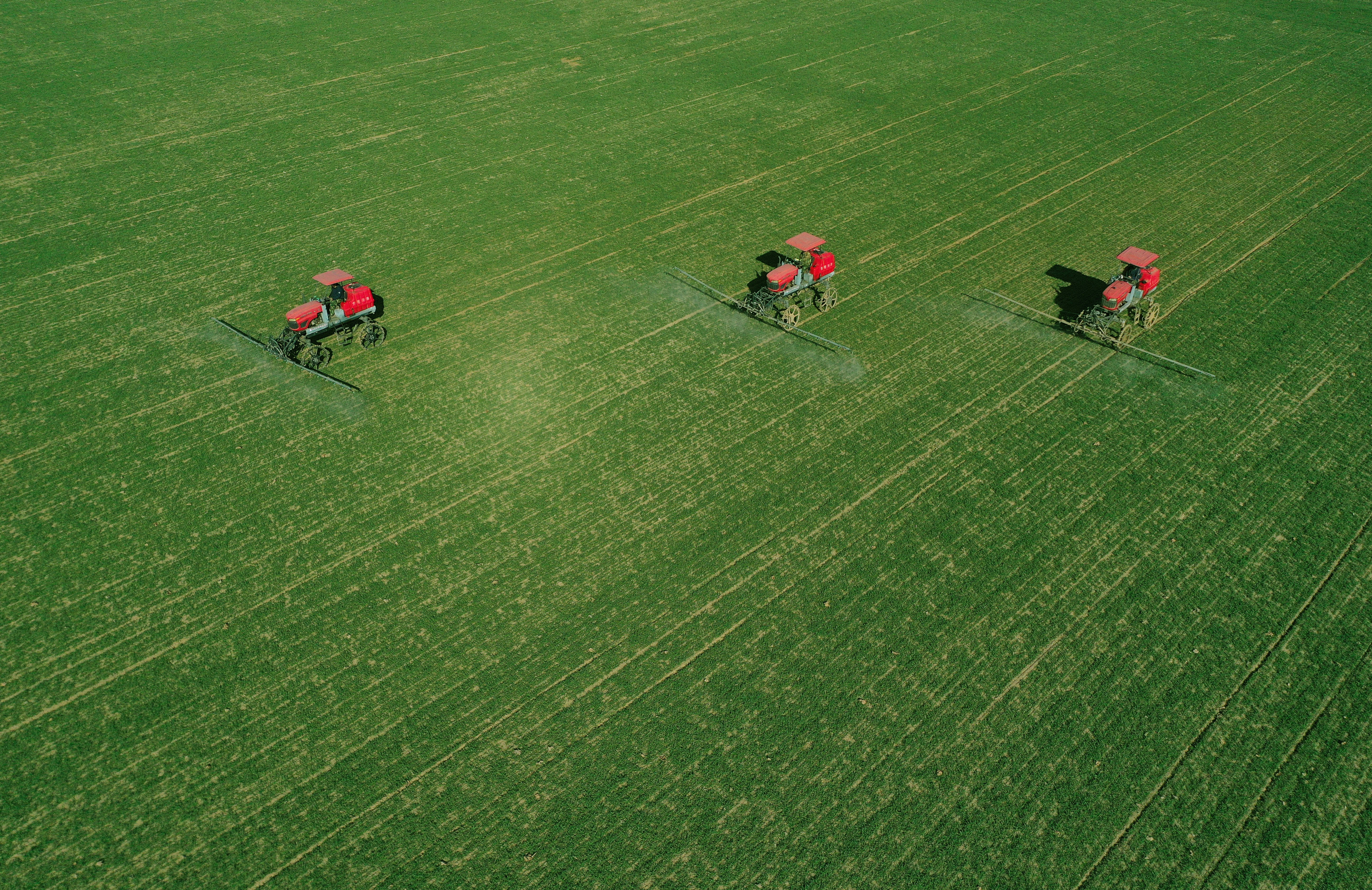 新华社照片,邢台(河北),2022年3月7日 春天来了 3月7日,农机在河北省邢台市南和区阎里乡的麦田开展春管作业(无人机照片)。 天气转暖,万物复苏,神州大地一派美丽春景。 新华社记者 朱旭东 摄