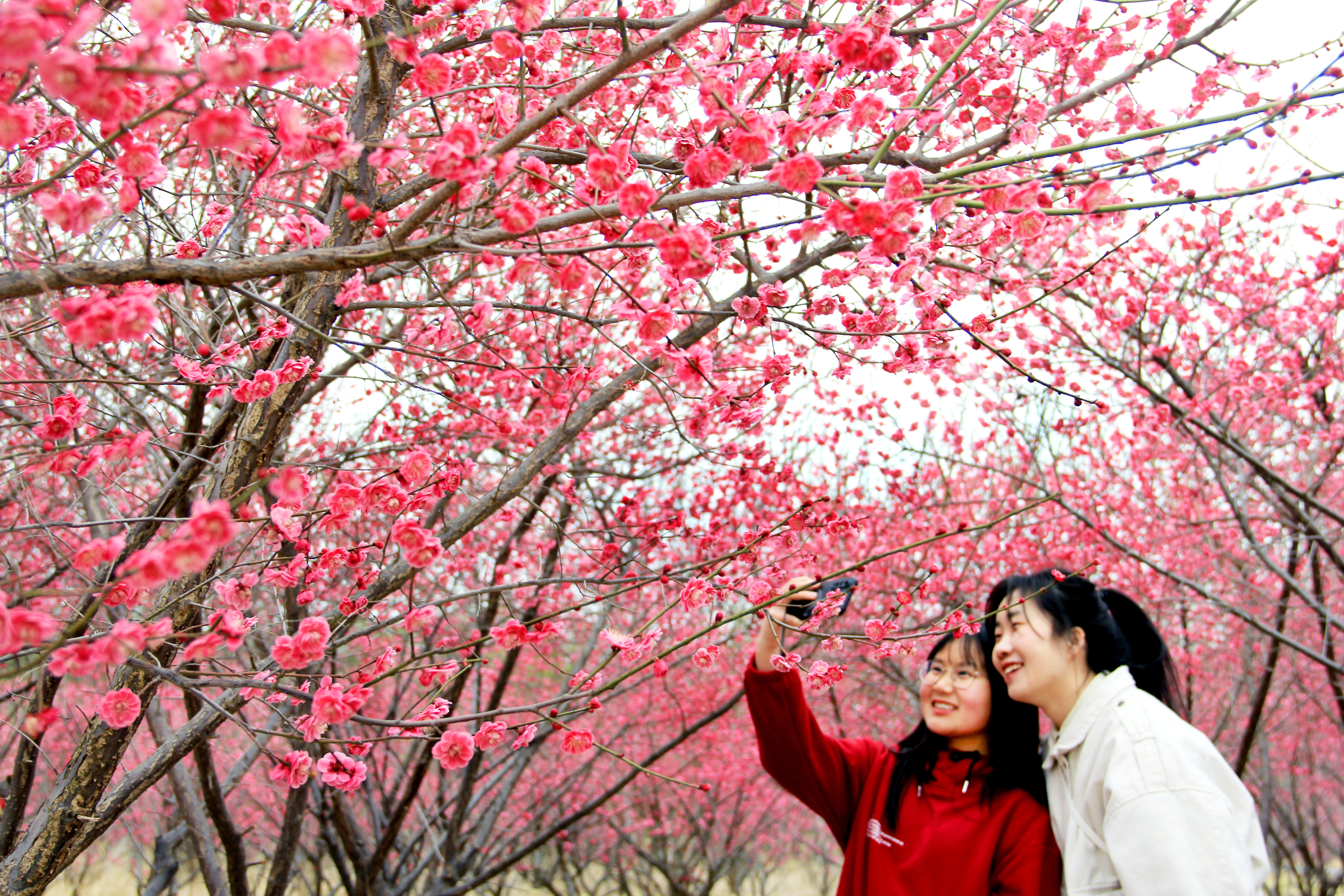 新华社照片,淮北(安徽),2022年3月7日 春天来了 3月6日,在安徽省淮北市南湖风景区,人们在梅花园赏花游玩。 天气转暖,万物复苏,神州大地一派美丽春景。 新华社发(周方玲摄)