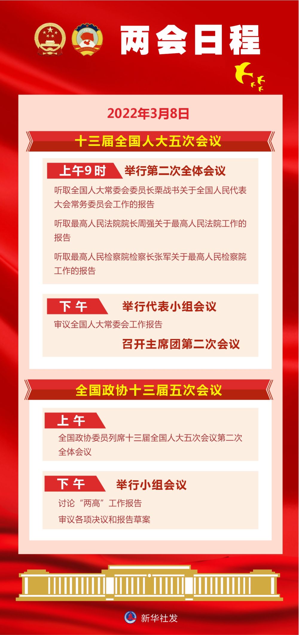 3月8日两会日程预告:全国人代会举行第二次全体会议