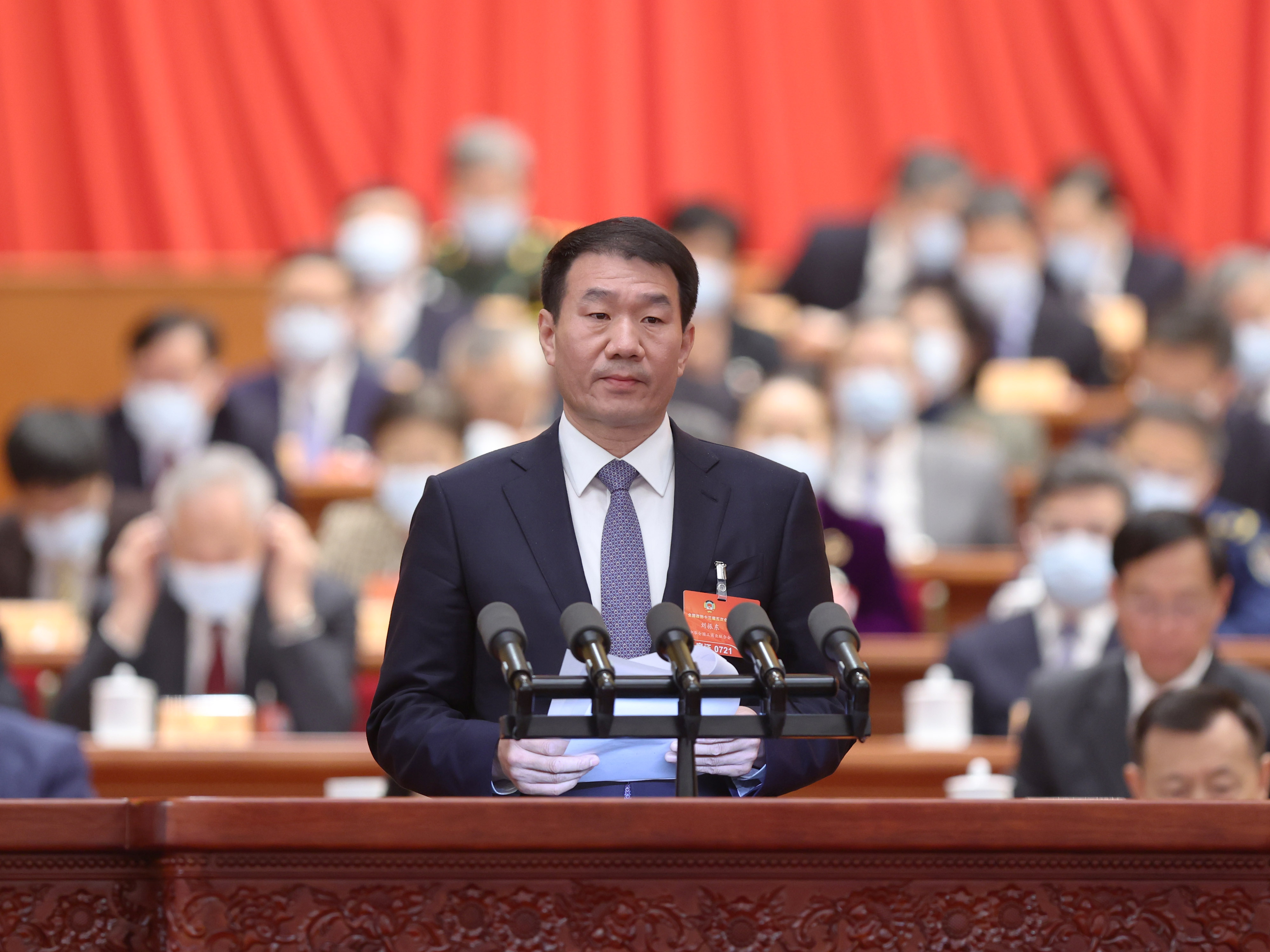 新华社照片,北京,2022年3月7日 全国政协十三届五次会议第二次全体会议大会发言 3月7日,全国政协十三届五次会议在北京人民大会堂举行第二次全体会议。这是刘振东委员代表全国工商联作大会发言。 新华社记者 丁林 摄