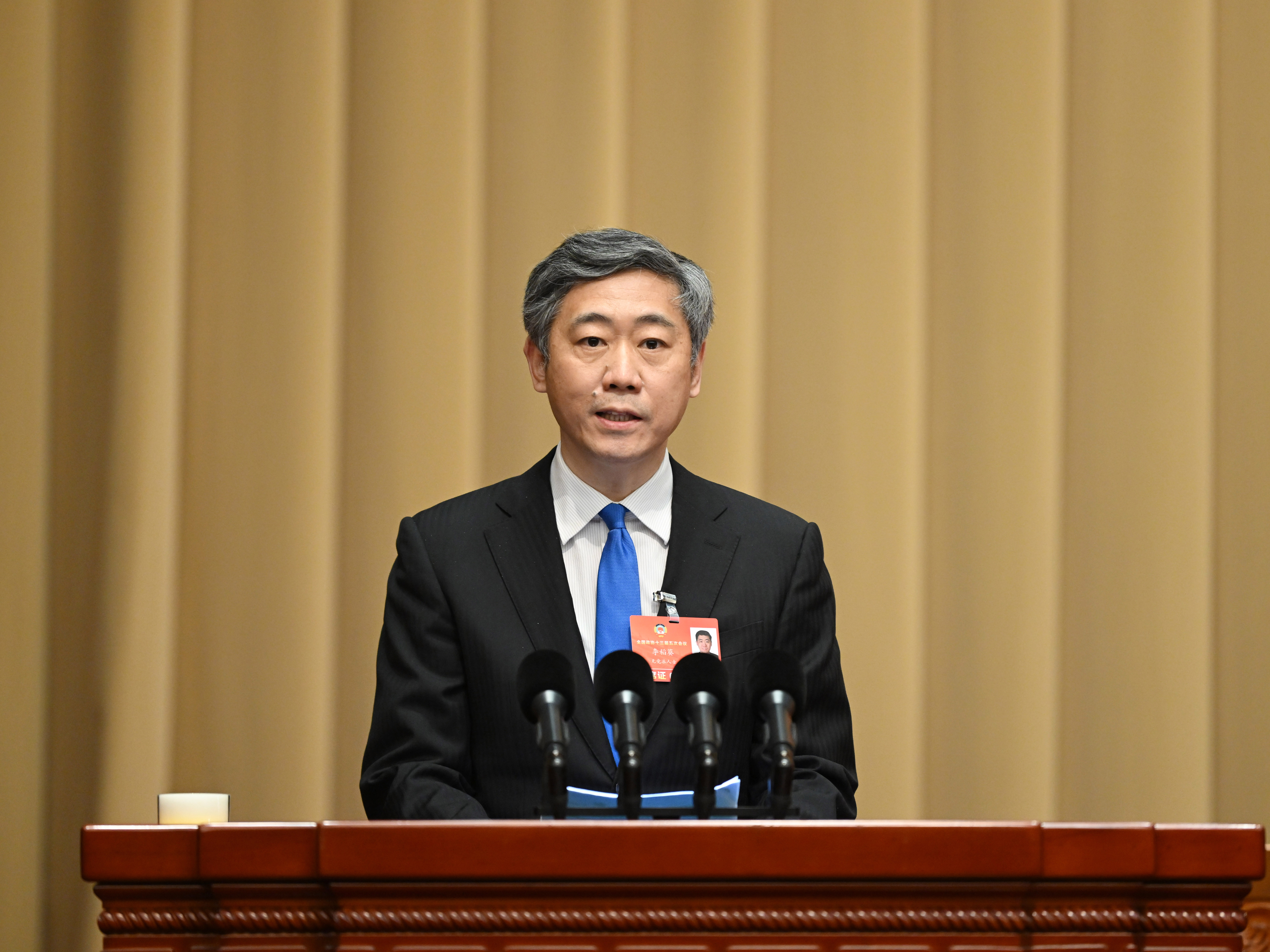 新华社照片,北京,2022年3月7日 全国政协十三届五次会议举行视频会议 12名委员作大会发言 3月7日,全国政协十三届五次会议举行视频会议。12名委员作大会发言。这是李稻葵委员在主会场作大会发言。 新华社记者 殷博古 摄