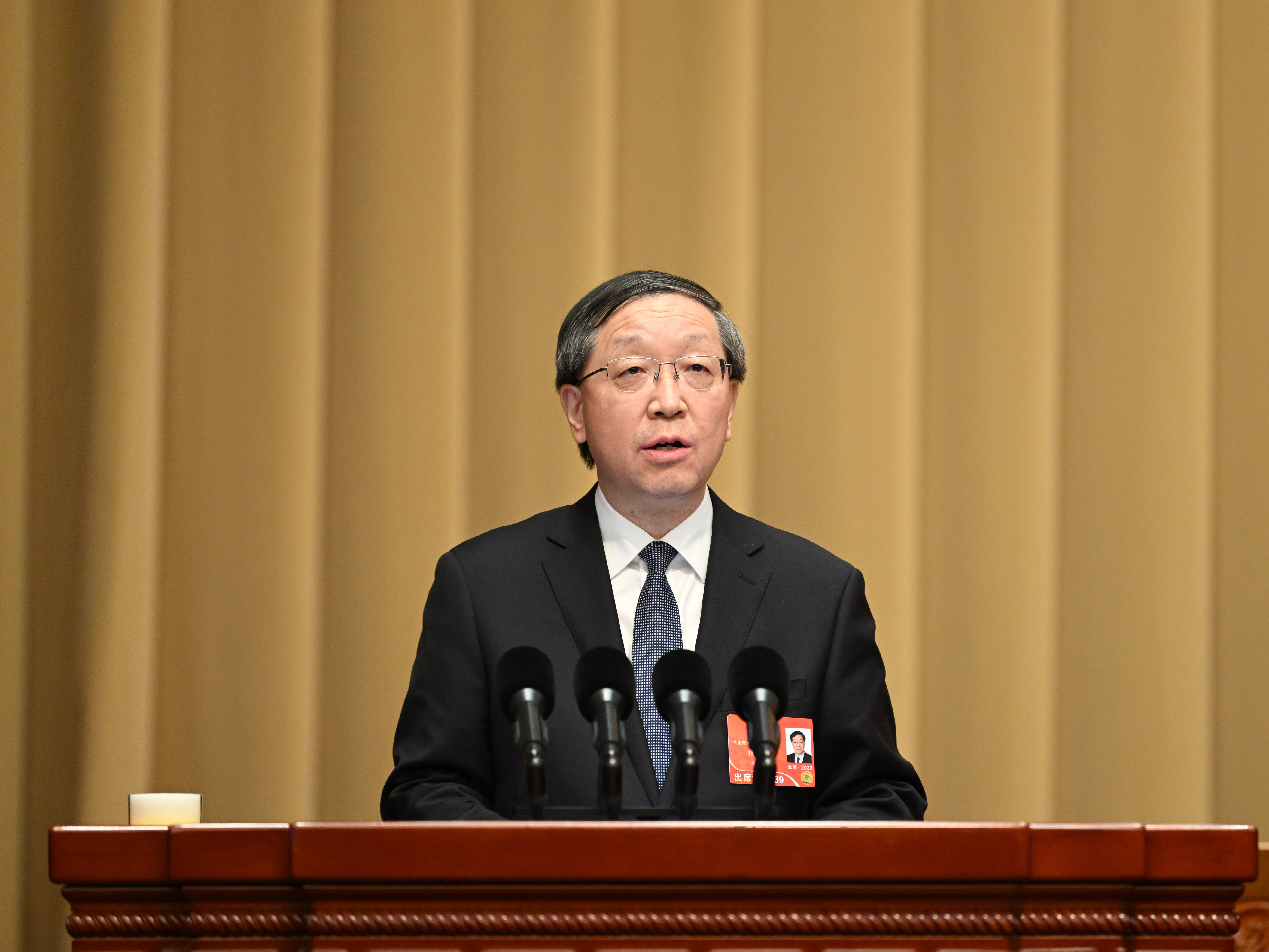 新华社照片,北京,2022年3月7日 全国政协十三届五次会议举行视频会议 12名委员作大会发言 3月7日,全国政协十三届五次会议举行视频会议。12名委员作大会发言。这是在主会场,钱锋委员代表九三学社中央作大会发言。 新华社记者 翟健岚 摄