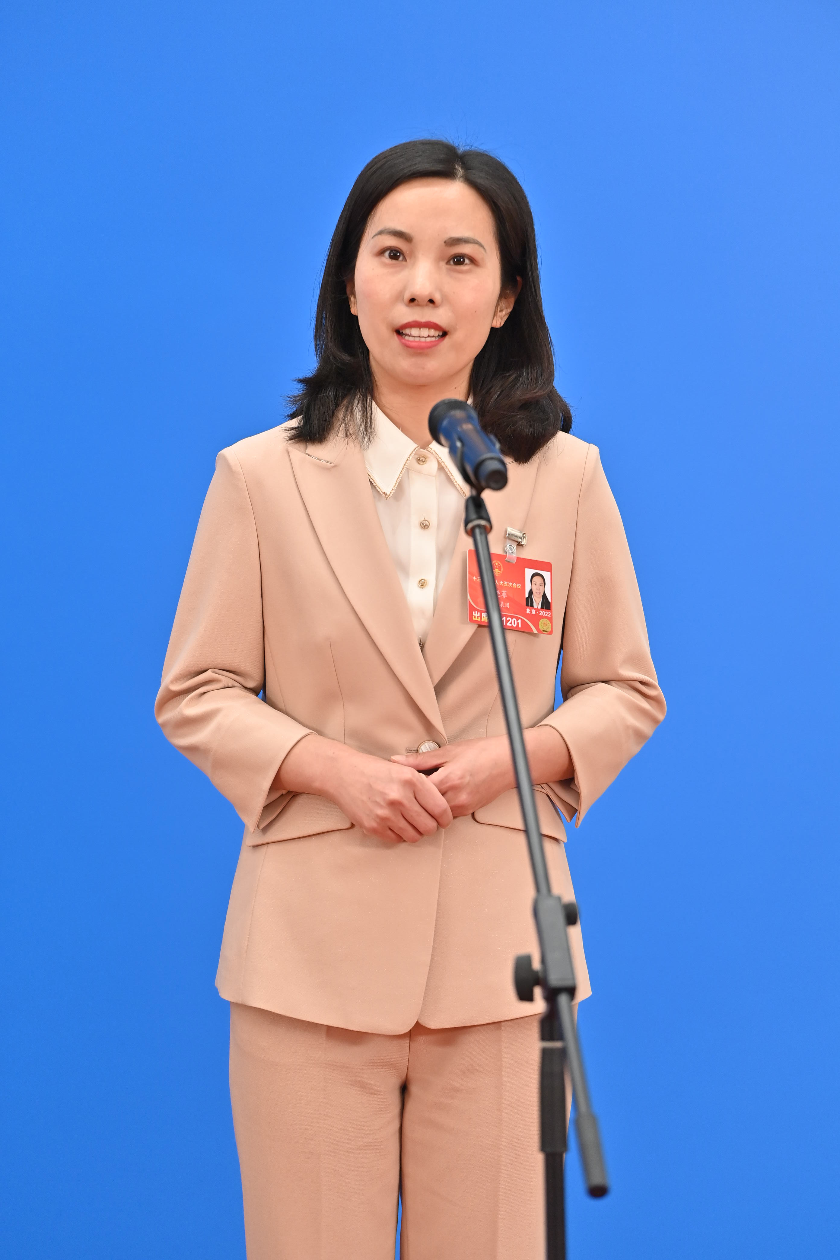 新华社照片,北京,2022年3月8日 聚焦“代表通道” 3月8日,第十三届全国人民代表大会第五次会议举行第二场“代表通道”采访活动。这是全国人大代表王晓菲通过网络视频方式接受采访。 新华社记者 李鑫 摄