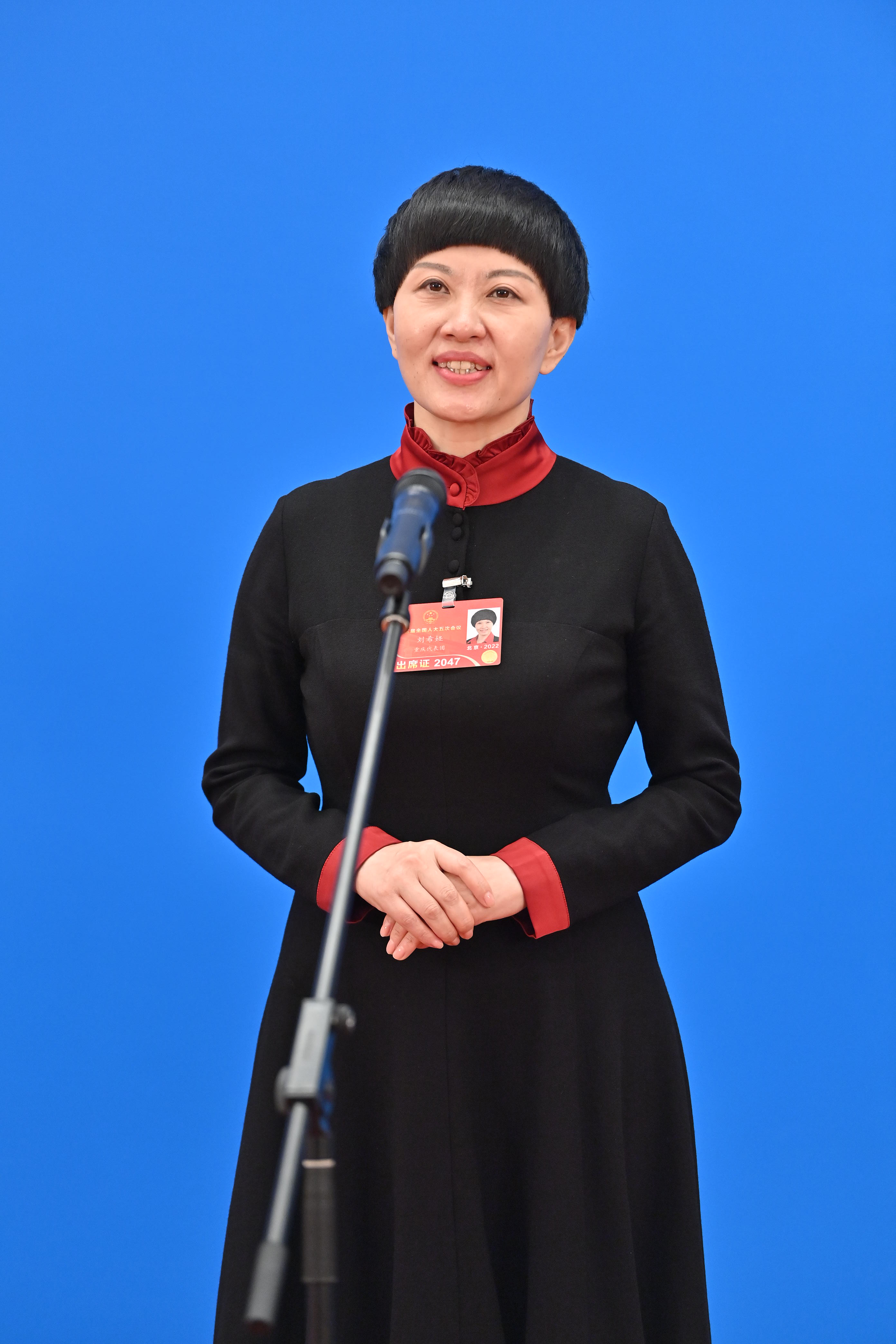 新华社照片,北京,2022年3月8日 聚焦“代表通道” 3月8日,第十三届全国人民代表大会第五次会议举行第二场“代表通道”采访活动。这是全国人大代表刘希娅通过网络视频方式接受采访。 新华社记者 李鑫 摄