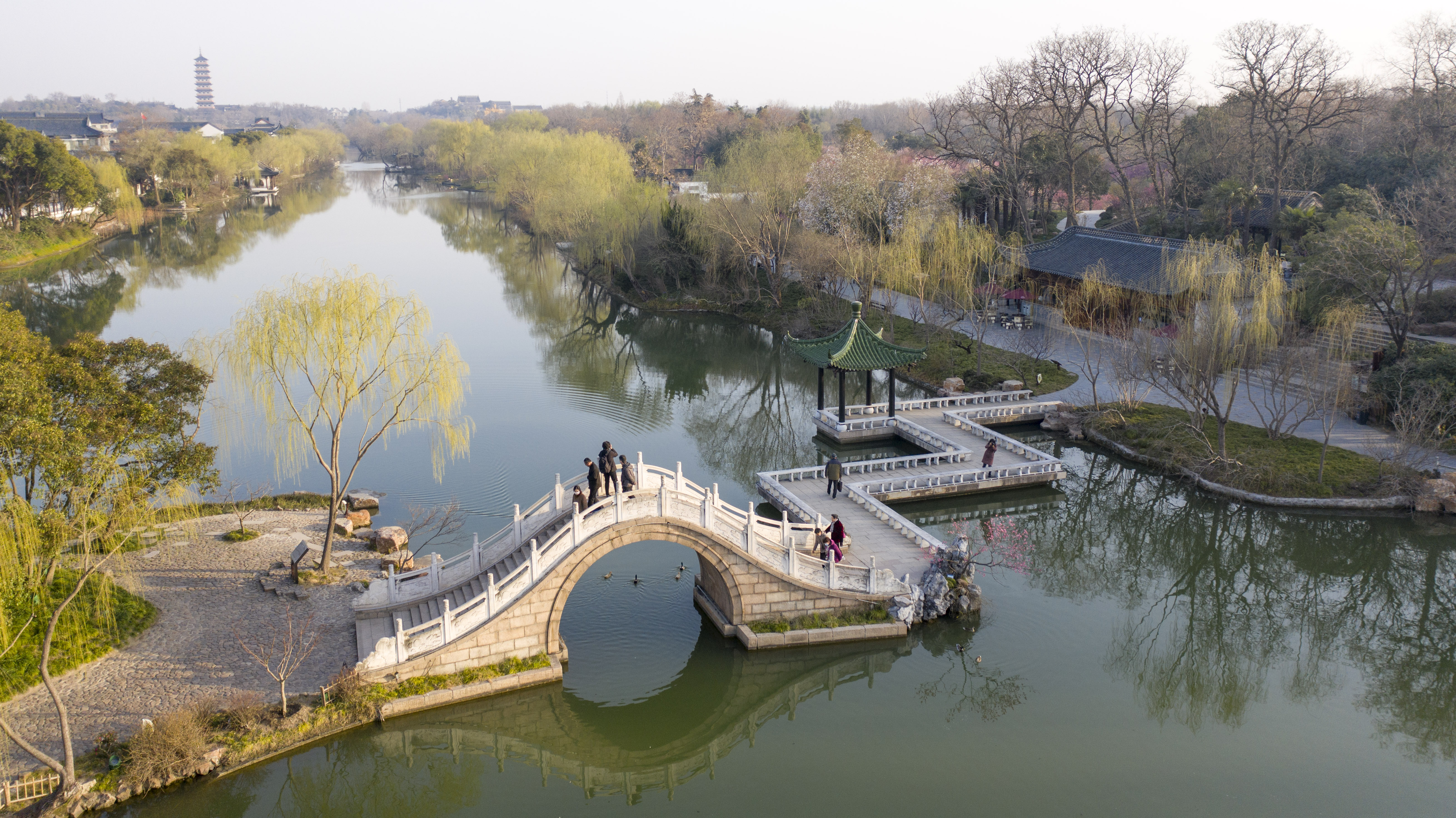 新华社照片,扬州(江苏),2022年3月8日 春之歌 3月8日,游客在江苏扬州瘦西湖风景区踏春游湖(无人机照片)。 春回大地,万物复苏,神州大地奏起春的交响曲。 新华社发(齐立广 摄)