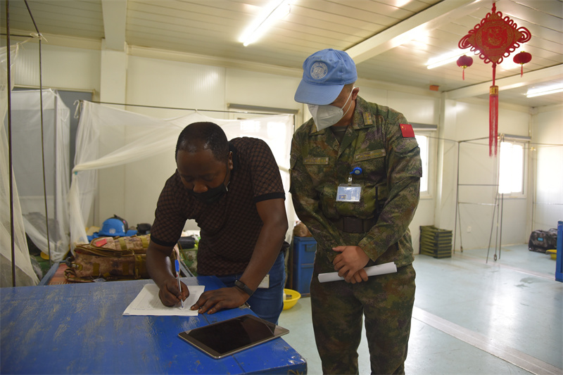 | 检查宿舍。中国第25批赴刚果(金)维和工兵分队供图 |