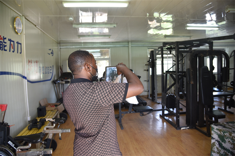 | 检查健身器材。中国第25批赴刚果(金)维和工兵分队供图 |