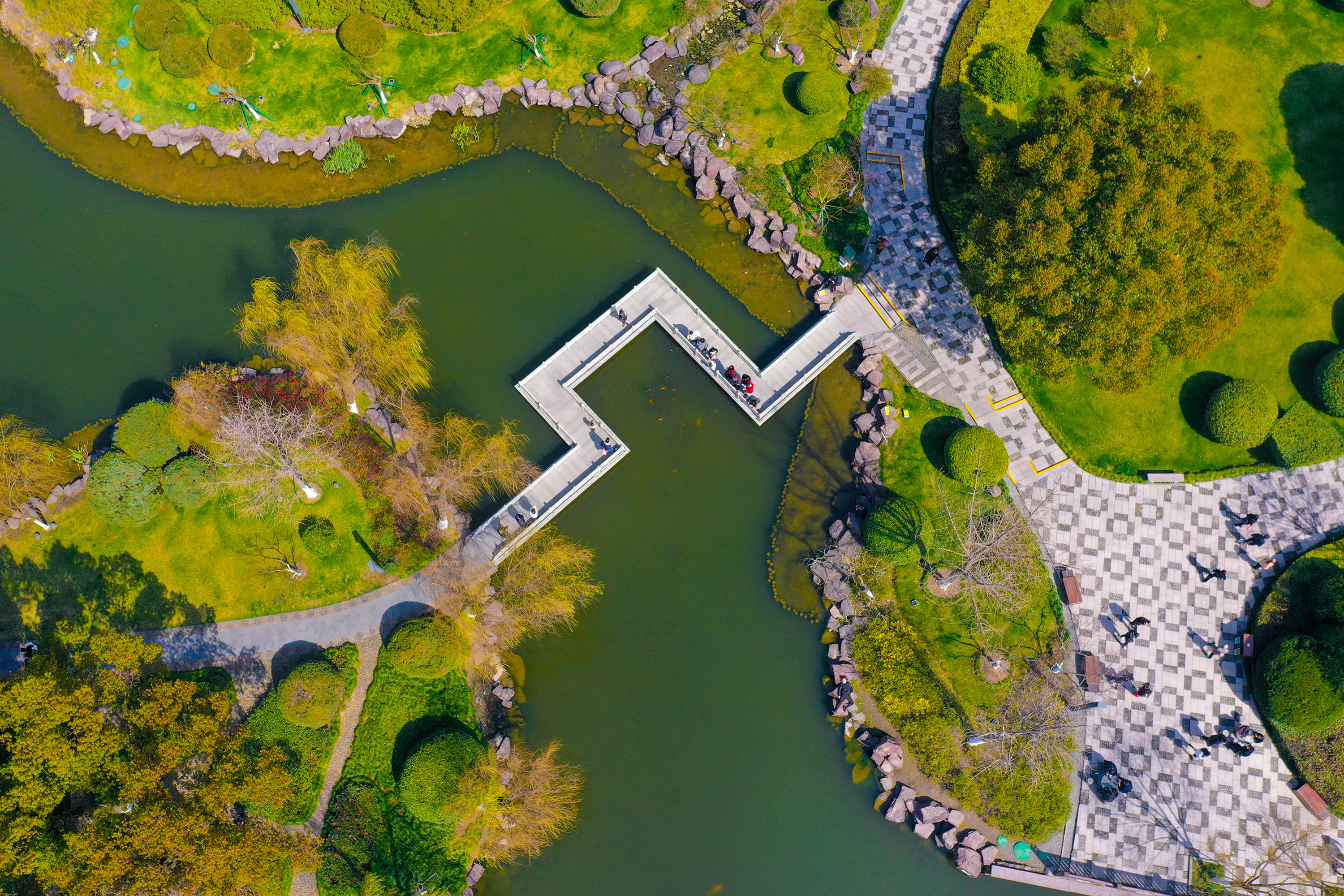 新华社照片,宁波(浙江),2022年3月8日 春之歌 3月8日拍摄的春色如画的浙江省宁波市月湖景区(无人机照片)。 春回大地,万物复苏,神州大地奏起春的交响曲。 新华社发(胡学军摄)