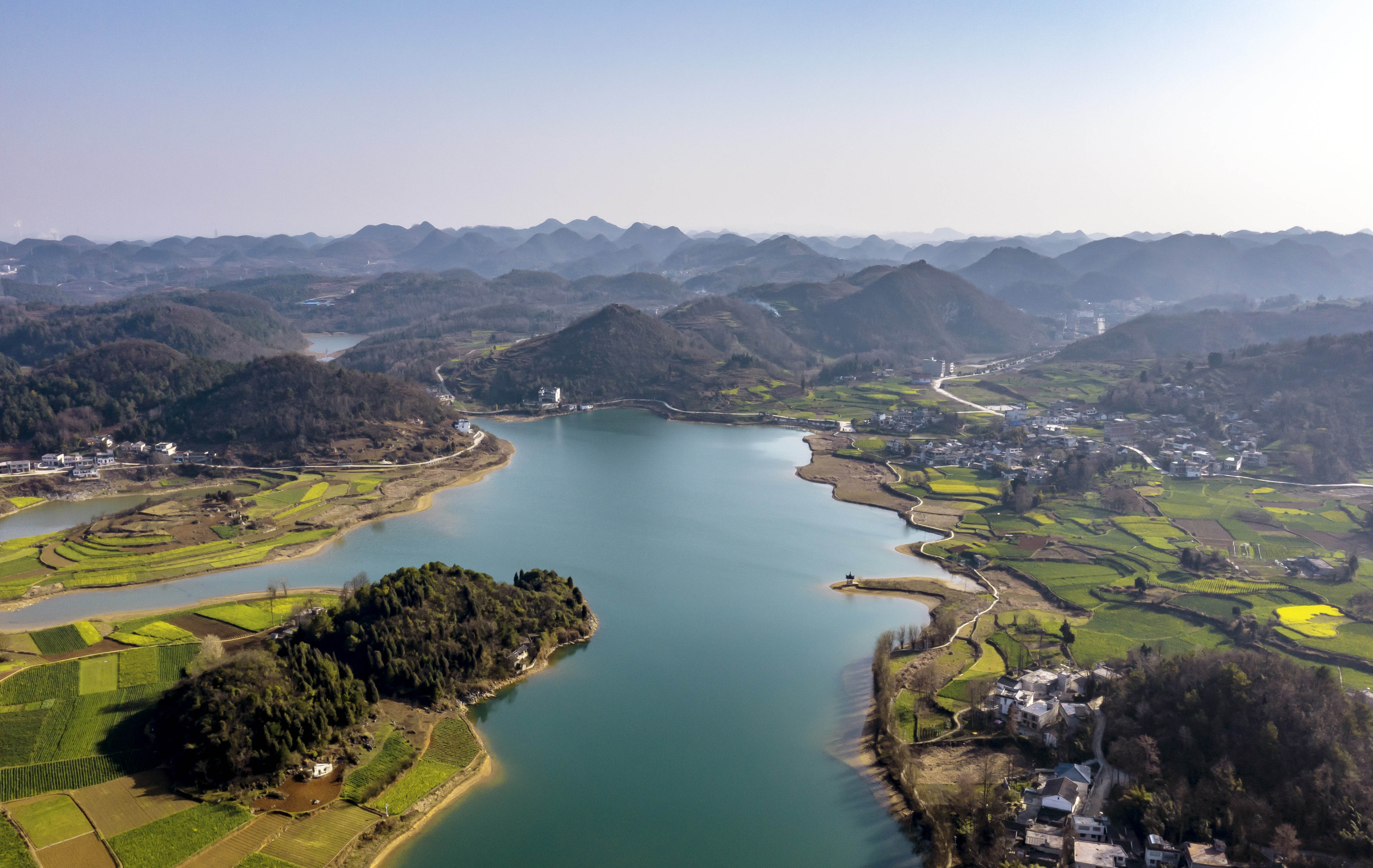 新华社照片,黔西(贵州),2022年3月8日 春染大地乡村美 3月8日拍摄的贵州省黔西市绿化白族彝族乡大海子田园春色(无人机照片)。 春暖花开,大地斑斓,美丽乡村处处散发着春的气息。 新华社发(范晖摄)