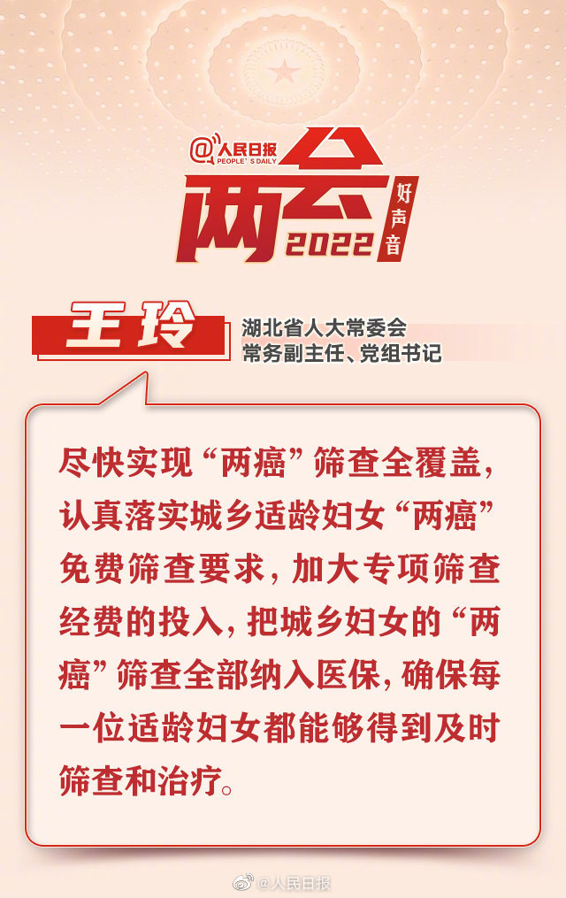 人大代表建议尽快实现乳腺癌宫颈癌筛查全覆盖