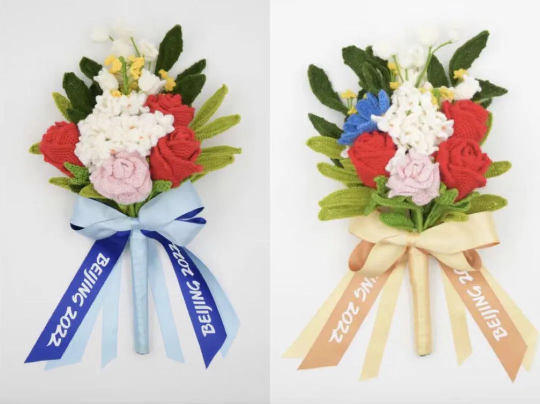 质检的标准,不仅要每个花片编织达标、花枝美观、花束漂亮,最重要的是安全。“整个花束的骨架是金属,小花片里缠绕着0.4毫米粗的铜丝、花枝和花柄里是2毫米粗的铁丝。”刘晓云说。冬残奥会上,运动员们身体情况各有不同,领奖时不是所有人都能手捧花束,失去双手的运动员会用头部和肩颈来夹住花束。“这就要求绒线必须将所有金属包裹起来,不能有一毫米金属伸出扎伤运动员。”
