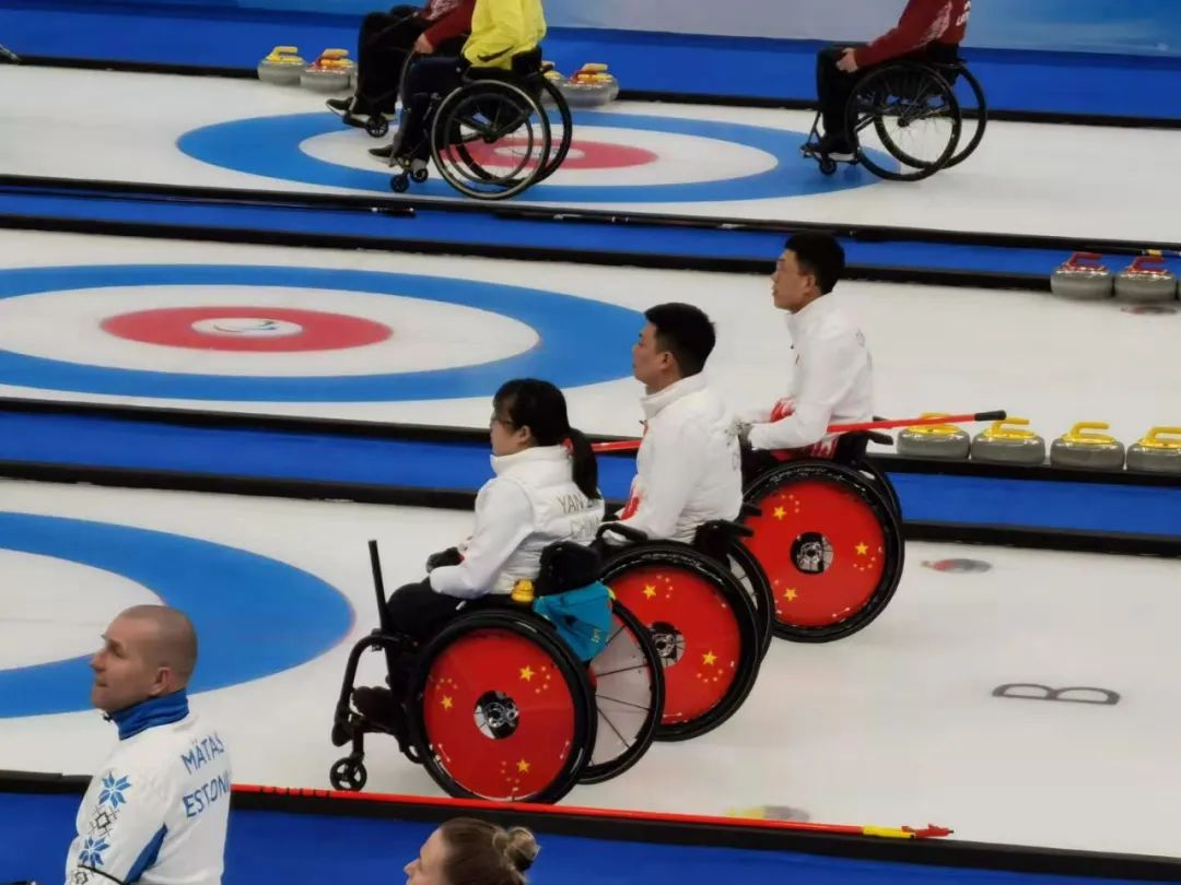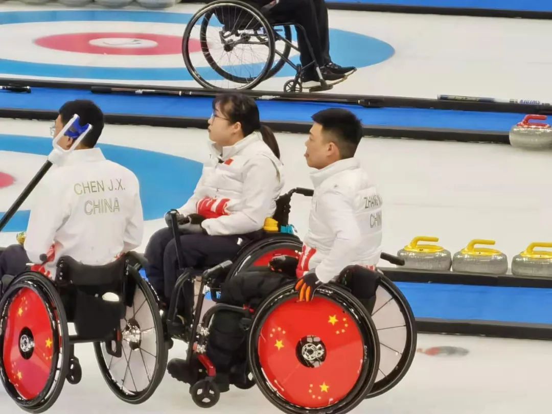 图为轮椅冰壶队在比赛中