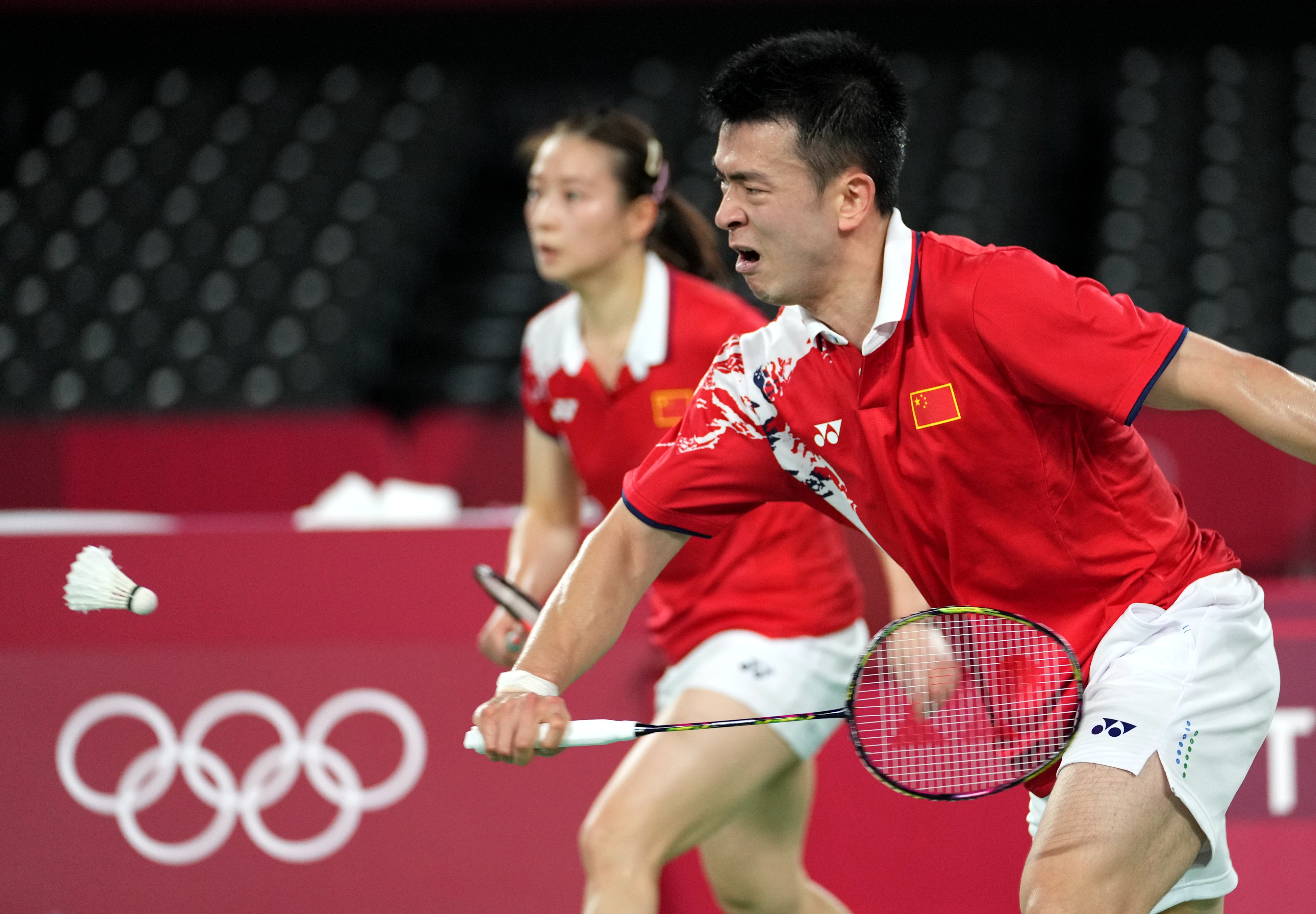 2021年7月30日,东京奥运会羽毛球混双决赛,中国选手郑思维在比赛中。新华社记者李一博摄