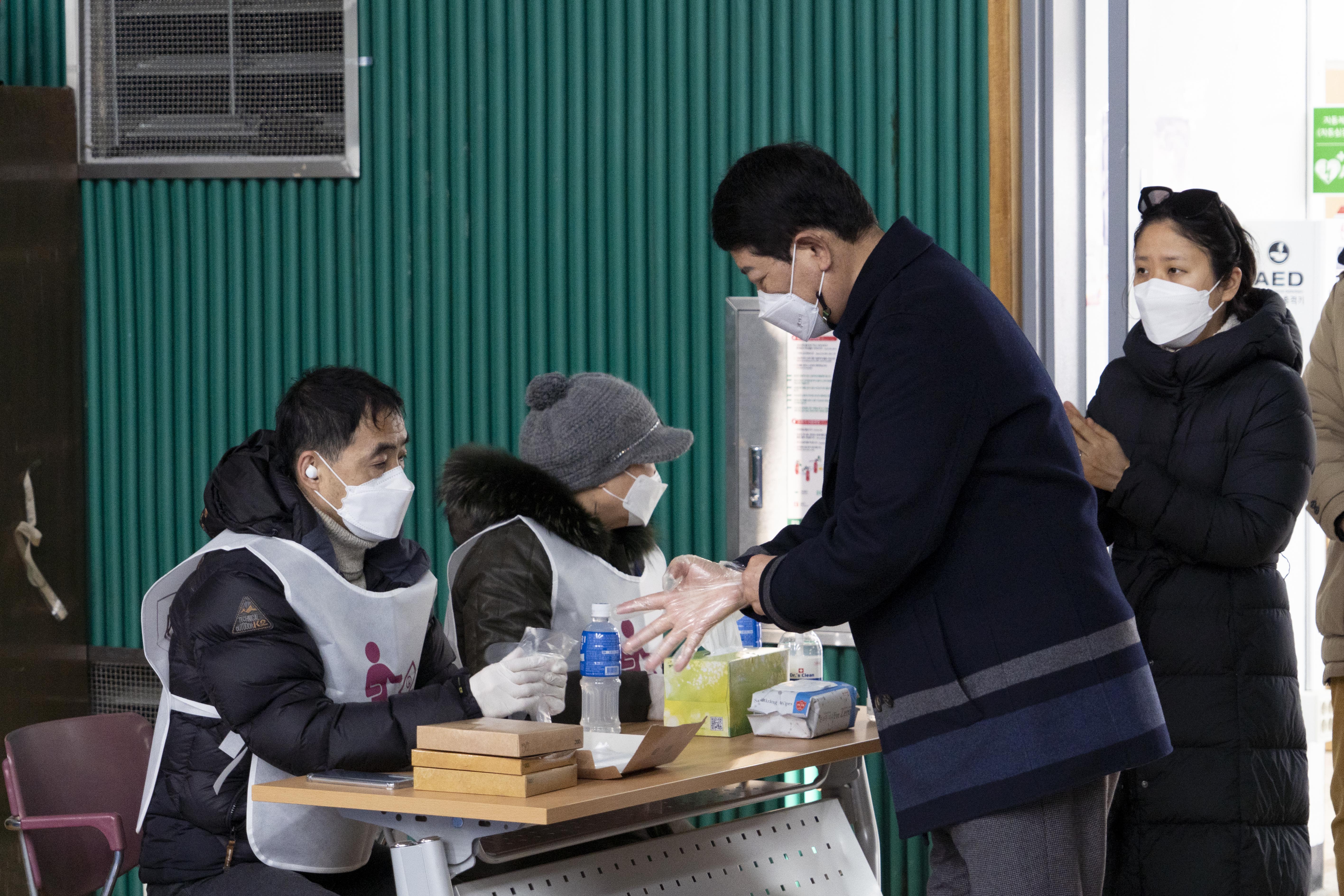 新华社照片,首尔,2022年3月9日 (国际)(7)韩国第20届总统选举开始正式投票 3月9日,在韩国首尔一个投票站,选民在投票前佩戴一次性塑料手套。 韩国第20届总统选举当地时间9日6时(北京时间5时)开始正式投票。超过4400万登记选民将前往全国各地投票站,投票选出新一届总统。 新华社发(李相浩摄)