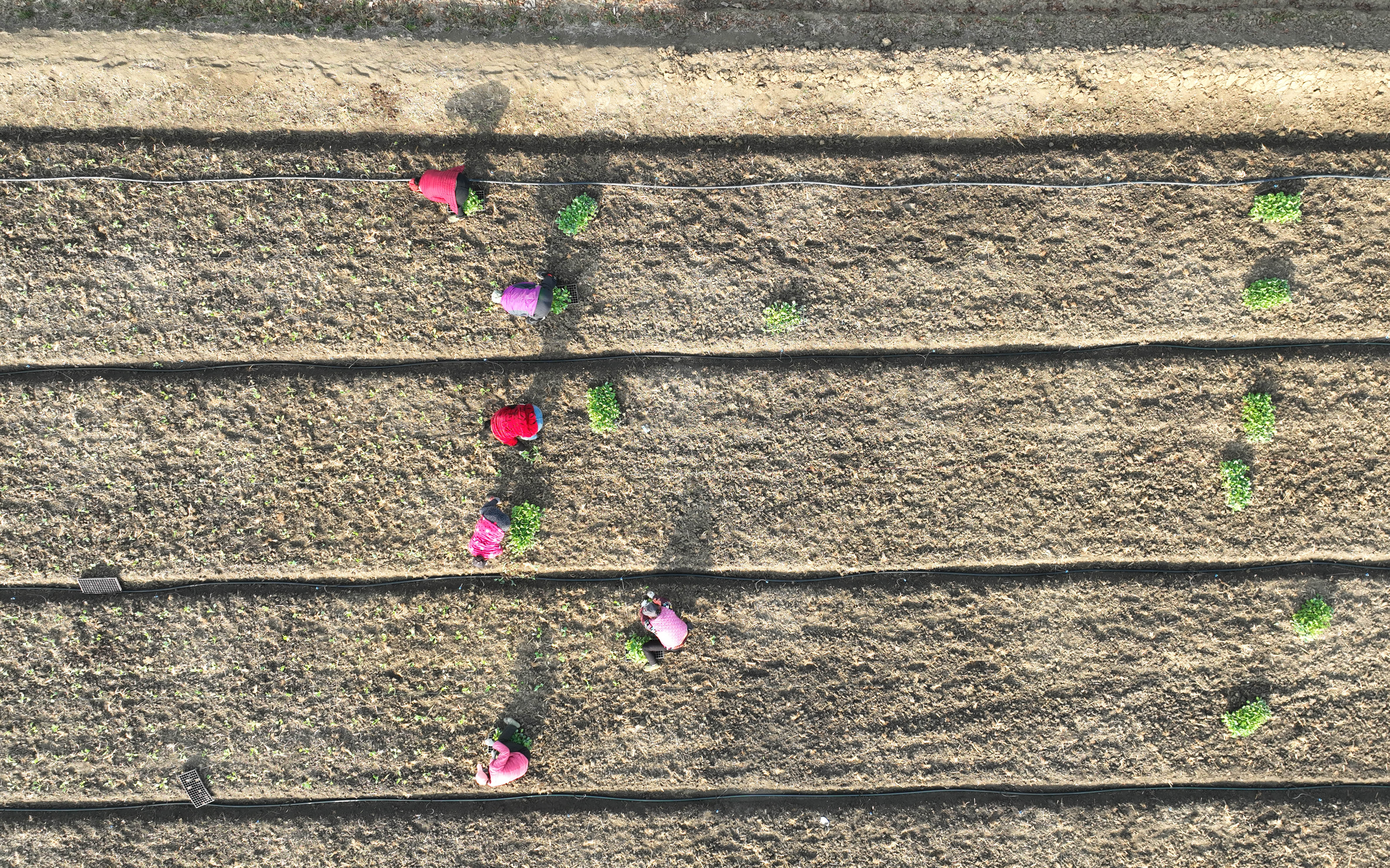 新华社照片,淮安(江苏),2022年3月9日 不负春光 3月9日,在江苏省淮安市洪泽区岔河镇岔河村,村民在田间移栽包菜幼苗(无人机照片)。 惊蛰过后,随着气温升高,各地草树绽绿,鲜花吐蕊,田间地头一片繁忙,神州大地呈现出生机盎然的春日景象。 新华社发(殷潮 摄)