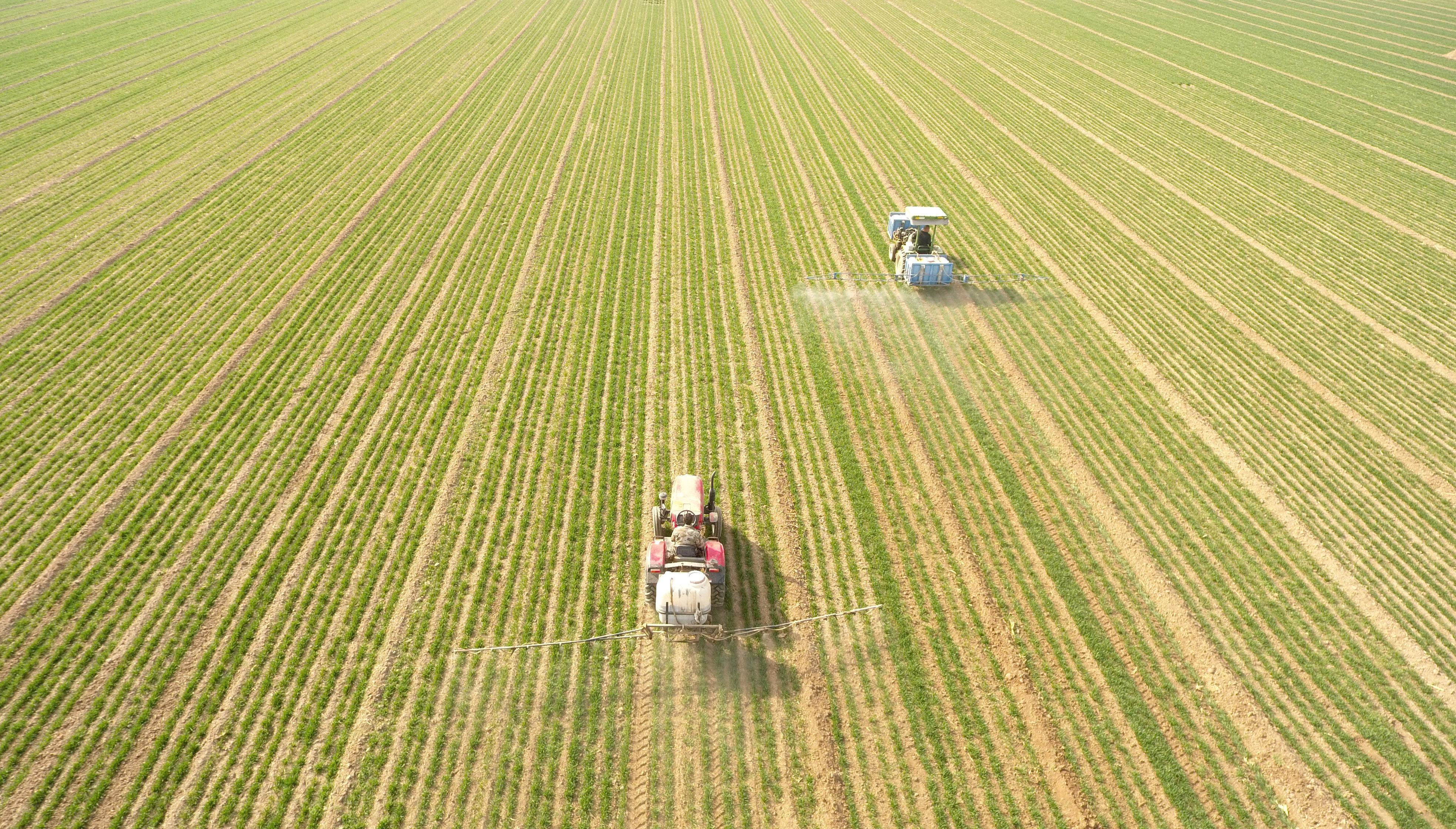 新华社照片,聊城(山东),2022年3月9日 不负春光 3月9日,在山东省聊城市茌平区菜屯镇任庄村,村民驾驶拖拉机给小麦喷施除草药物(无人机照片)。 惊蛰过后,随着气温升高,各地草树绽绿,鲜花吐蕊,田间地头一片繁忙,神州大地呈现出生机盎然的春日景象。 新华社发(赵玉国 摄)