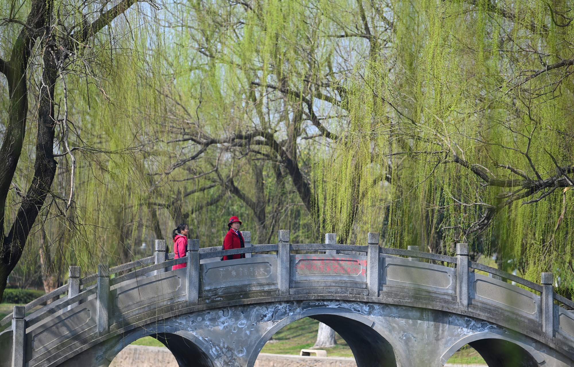 新华社照片,襄阳(湖北),2022年3月9日 不负春光 3月9日,游客在湖北省襄阳市襄城老龙堤公园游玩。 惊蛰过后,随着气温升高,各地草树绽绿,鲜花吐蕊,田间地头一片繁忙,神州大地呈现出生机盎然的春日景象。 新华社发(谢勇 摄)
