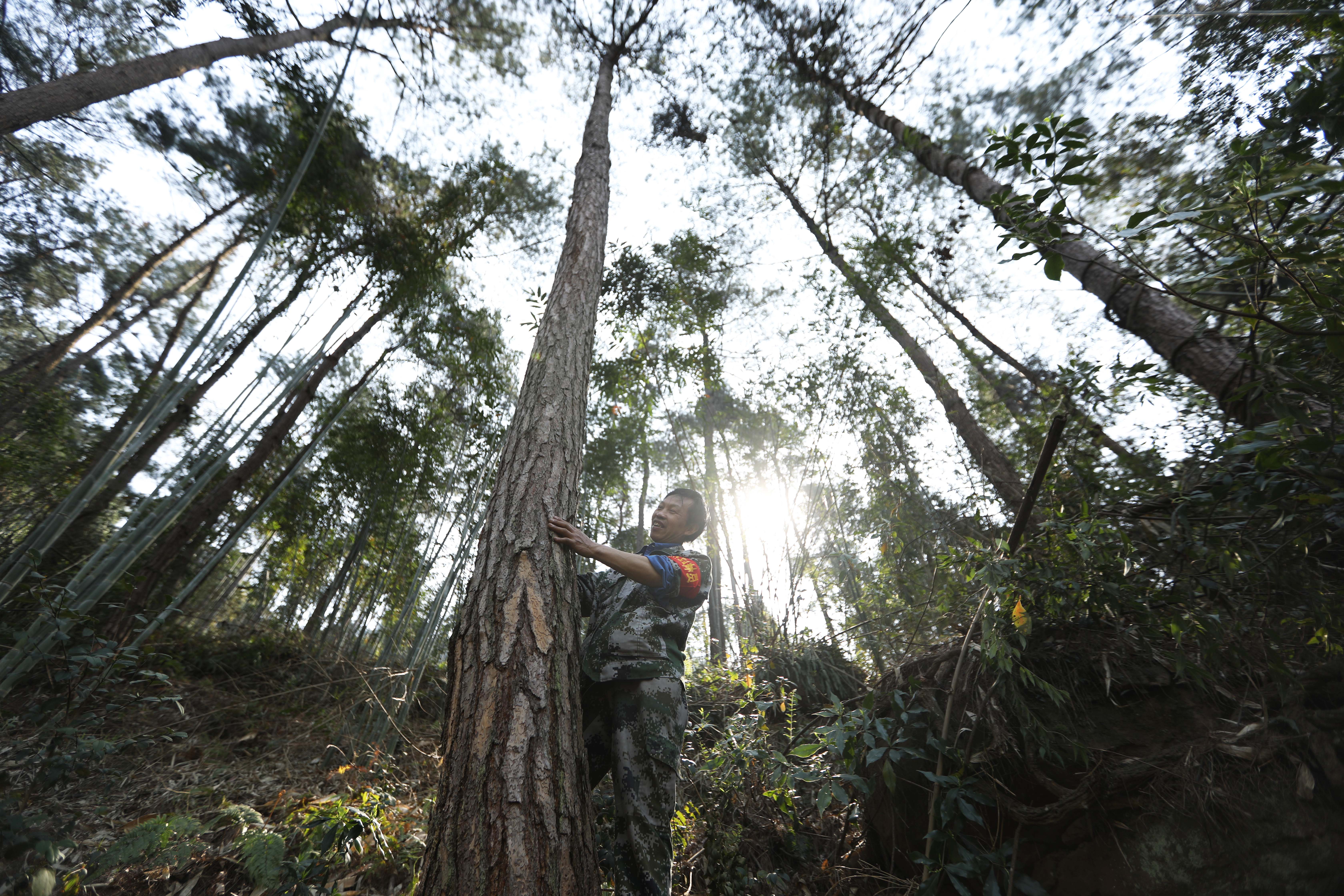新华社照片,贵阳,2022年3月9日 贵州森林覆盖率达到62.12% 3月9日,在贵州省赤水市葫市镇葫市村松林里,护林员陈应方在查看松树长势。 据贵州省2022年全省林业工作会议介绍,贵州2021年完成营造林361万亩,全省森林覆盖率达到62.12%。 新华社发(苟炼炜 摄)