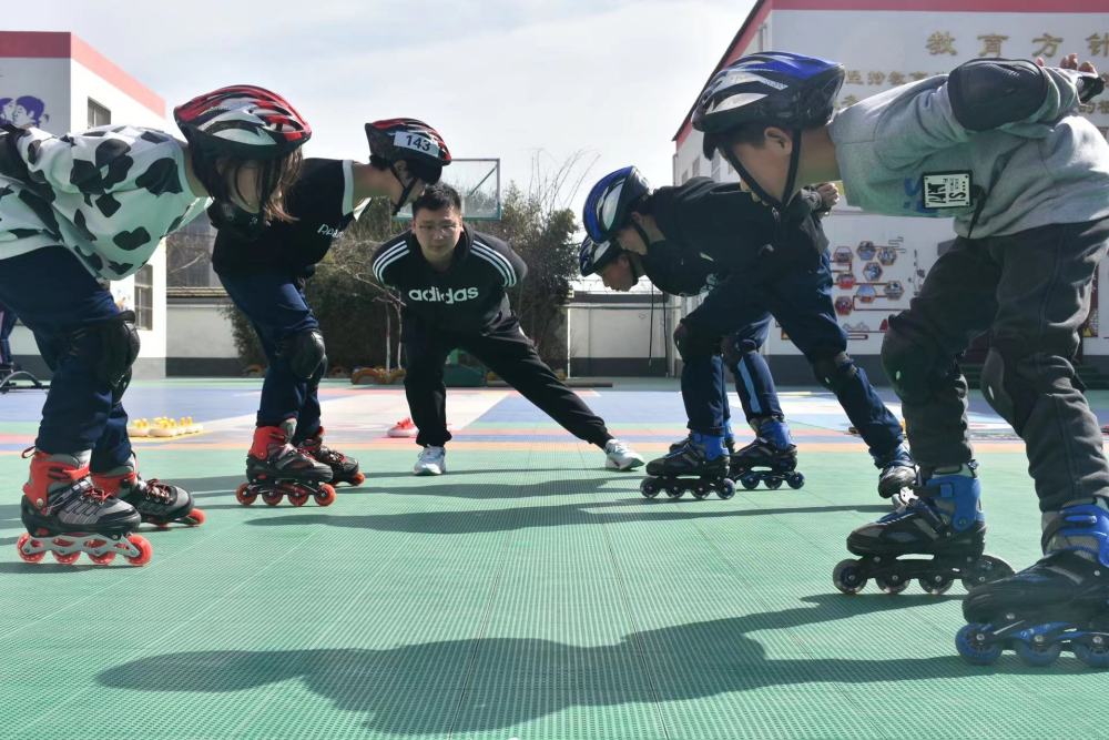 河北邯郸永年区特殊教育学校的轮滑教练在指导学生体验轮滑。新华社记者赵鸿宇摄