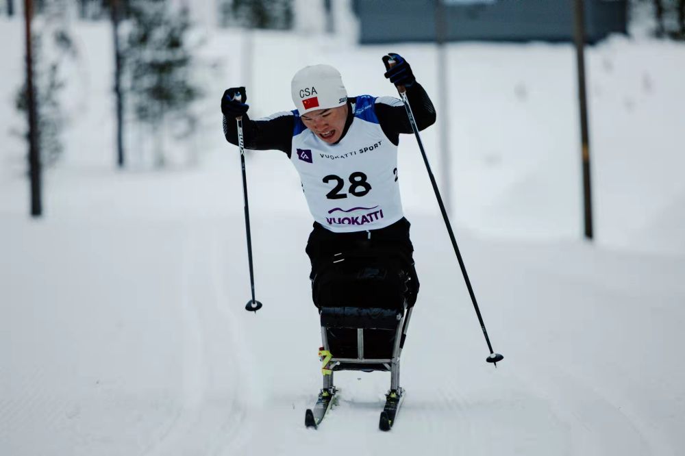 河北籍运动员刘梦涛在训练中。3月8日,刘梦涛在北京2022年冬残奥会冬季两项男子中距离(坐姿)比赛中获得冠军。河北省残联供图