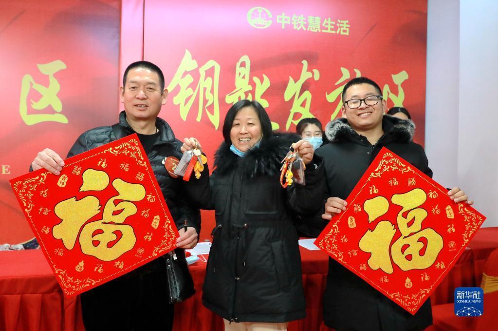 即将入住雄安新区容东片区E组团安置房的居民展示钥匙(1月17日摄)。