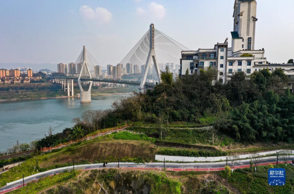 这是位于重庆市大渡口区的重钢崖线山城步道附近景色(2月15日摄,无人机照片)。