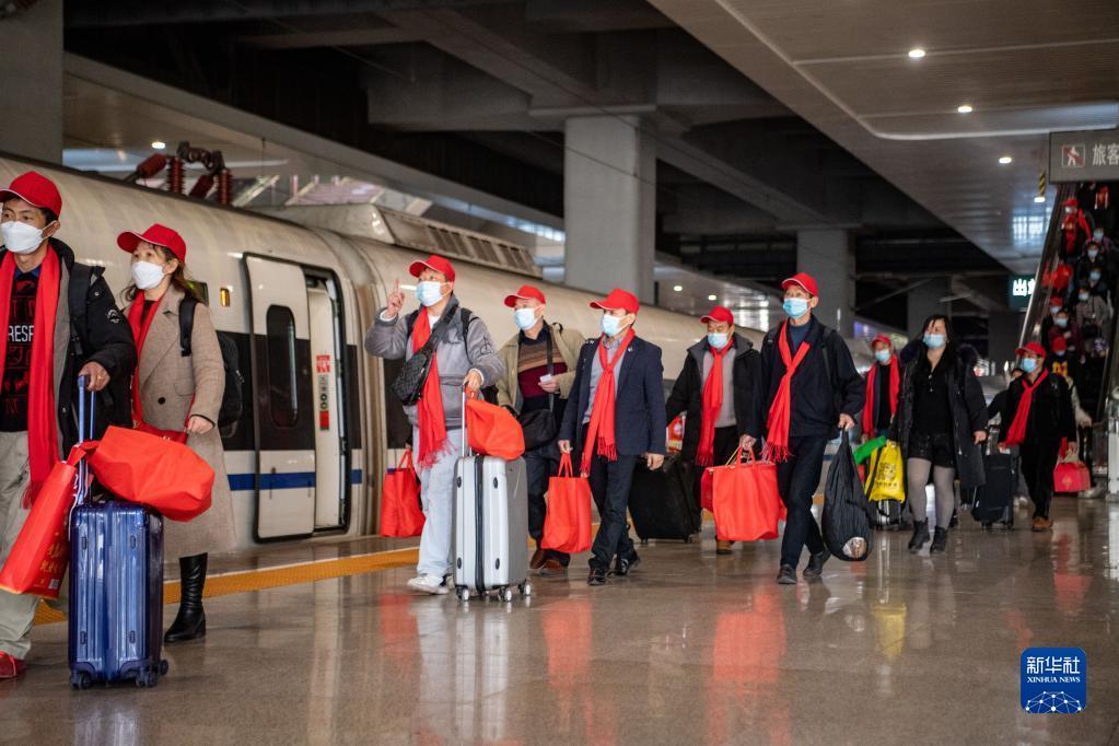 返岗务工人员在重庆西站乘车(2月16日摄)。