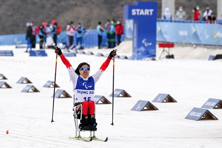 在6日进行的残奥越野滑雪女子长距离(坐姿)比赛中,32岁的杨洪琼夺得金牌。曾是云南省轮椅篮球队一员的她,2018年才跨项到残奥越野滑雪。“从暑到寒,开始练习时,我也有过不适应。夏天气温到三十多度还在训练,冬天到零下二三十度……但我的体能就是这样在训练中慢慢积累起来了。”杨洪琼说。