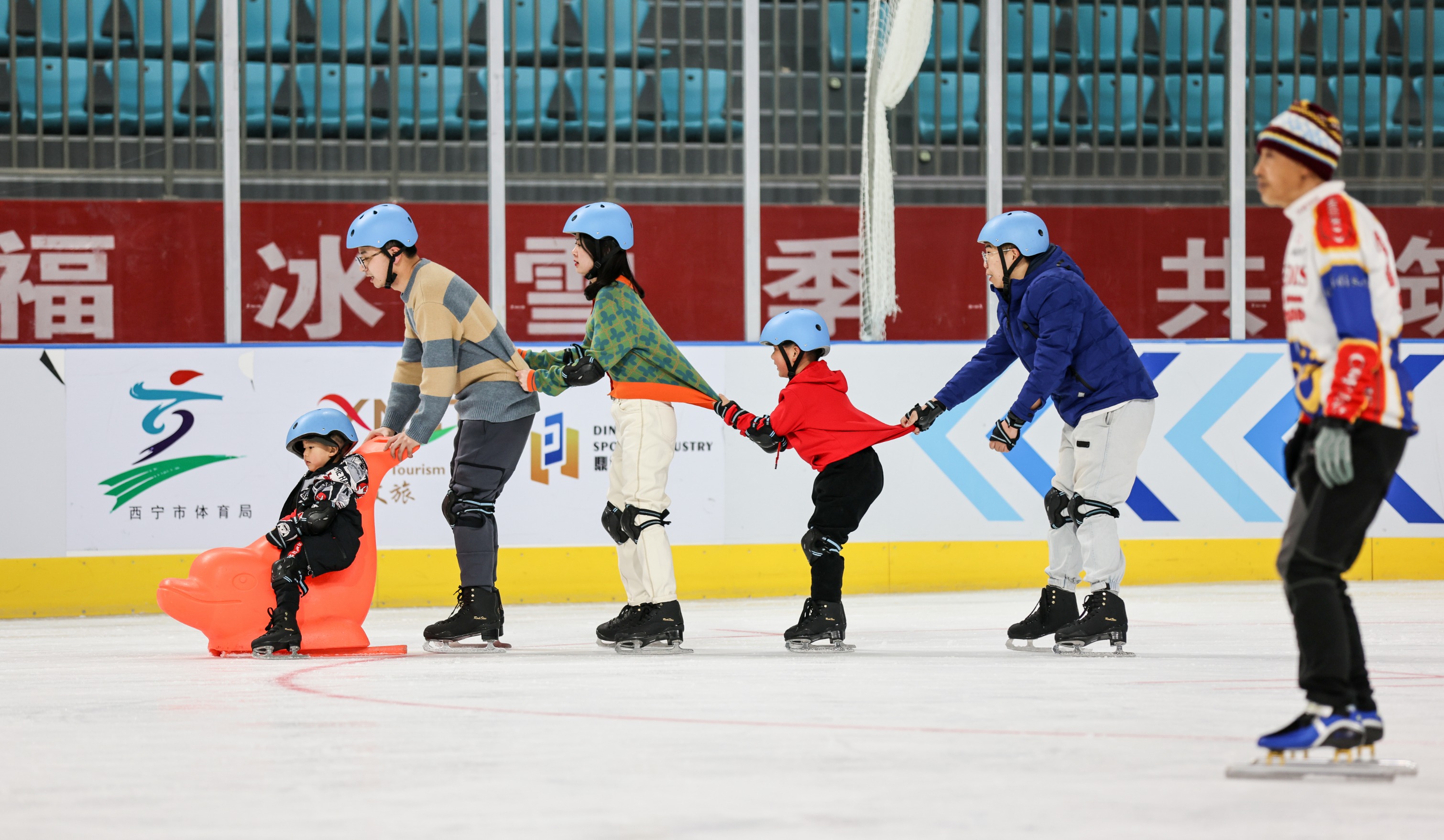 2月16日,市民在西宁市民中心滑冰场滑冰。新华社记者吴刚摄
