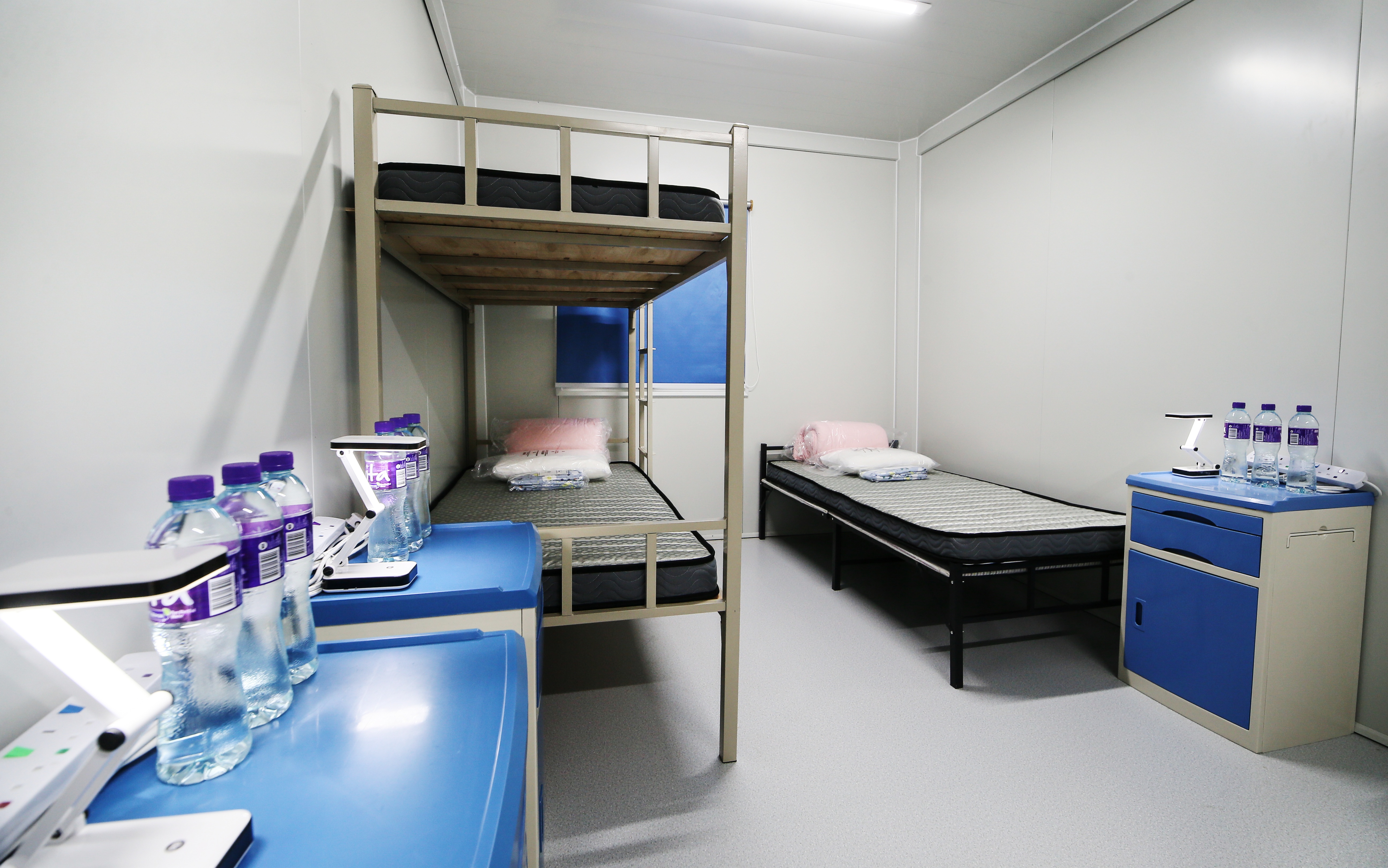 新华社照片,香港,2022年3月9日 香港新田方舱医院交付使用 这是3月8日拍摄的香港新田方舱医院隔离房间。 (配本社同题文字稿) 新华社发