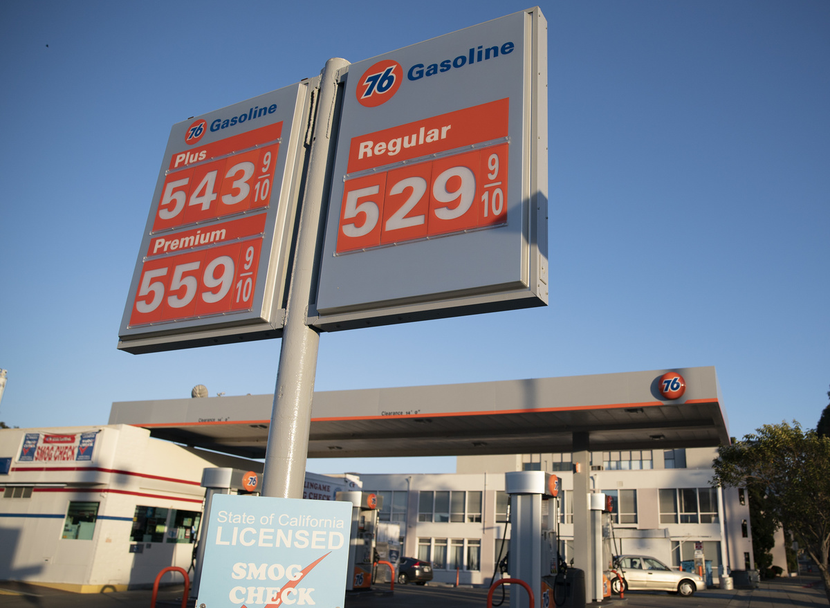 这是3月6日拍摄的美国旧金山湾区米尔布雷一家加油站。(新华社发,李建国摄)