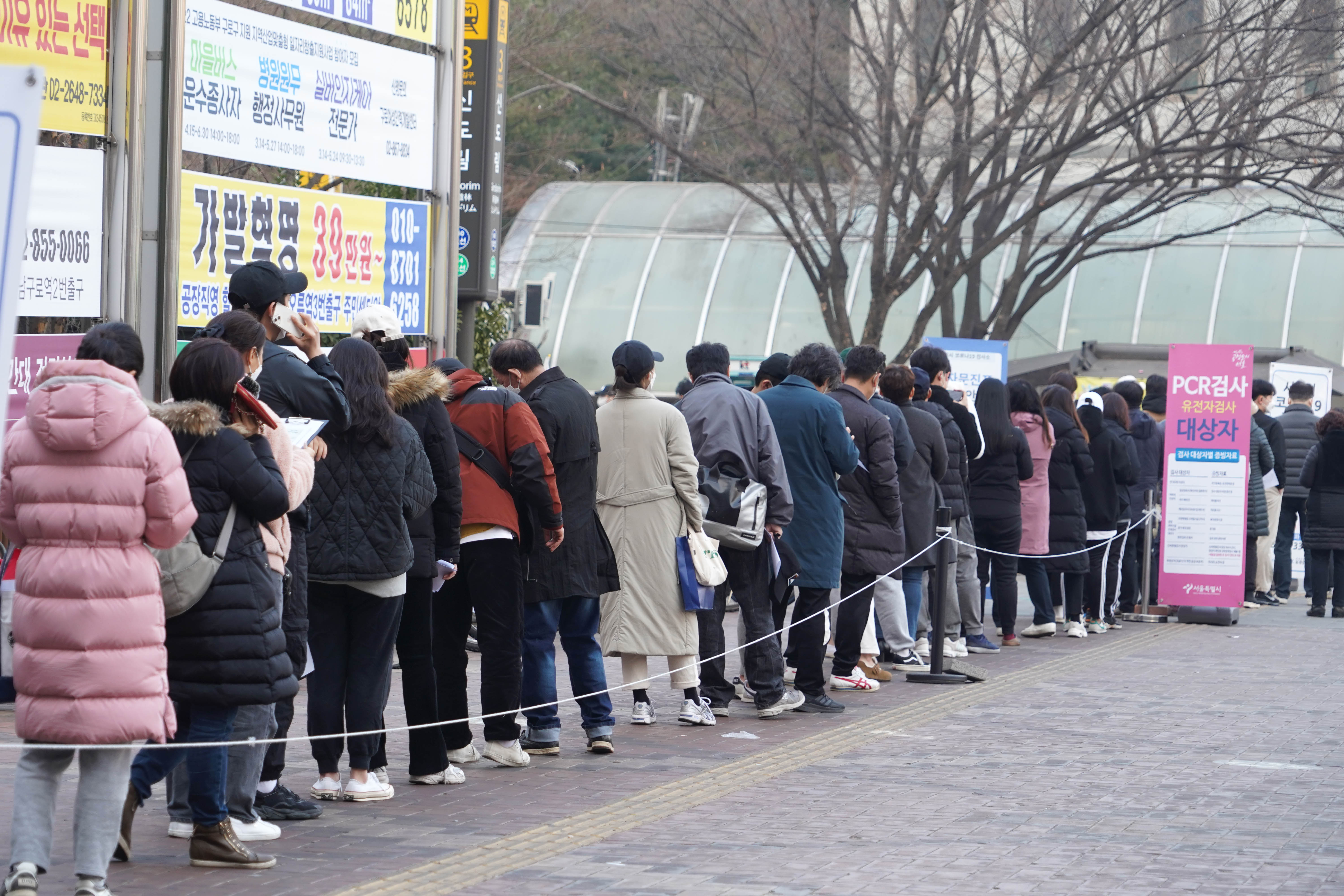 新华社照片,首尔,2022年3月9日 (国际疫情)(3)韩国日增新冠确诊病例超34万例创新高 3月9日,人们在韩国首尔一处新冠检测点排队等待检测。 韩国中央防疫对策本部9日通报,截至9日零时,韩国单日新增新冠确诊病例超34万例,创下该国疫情以来日增确诊病例数新高。 新华社发(李相浩摄)