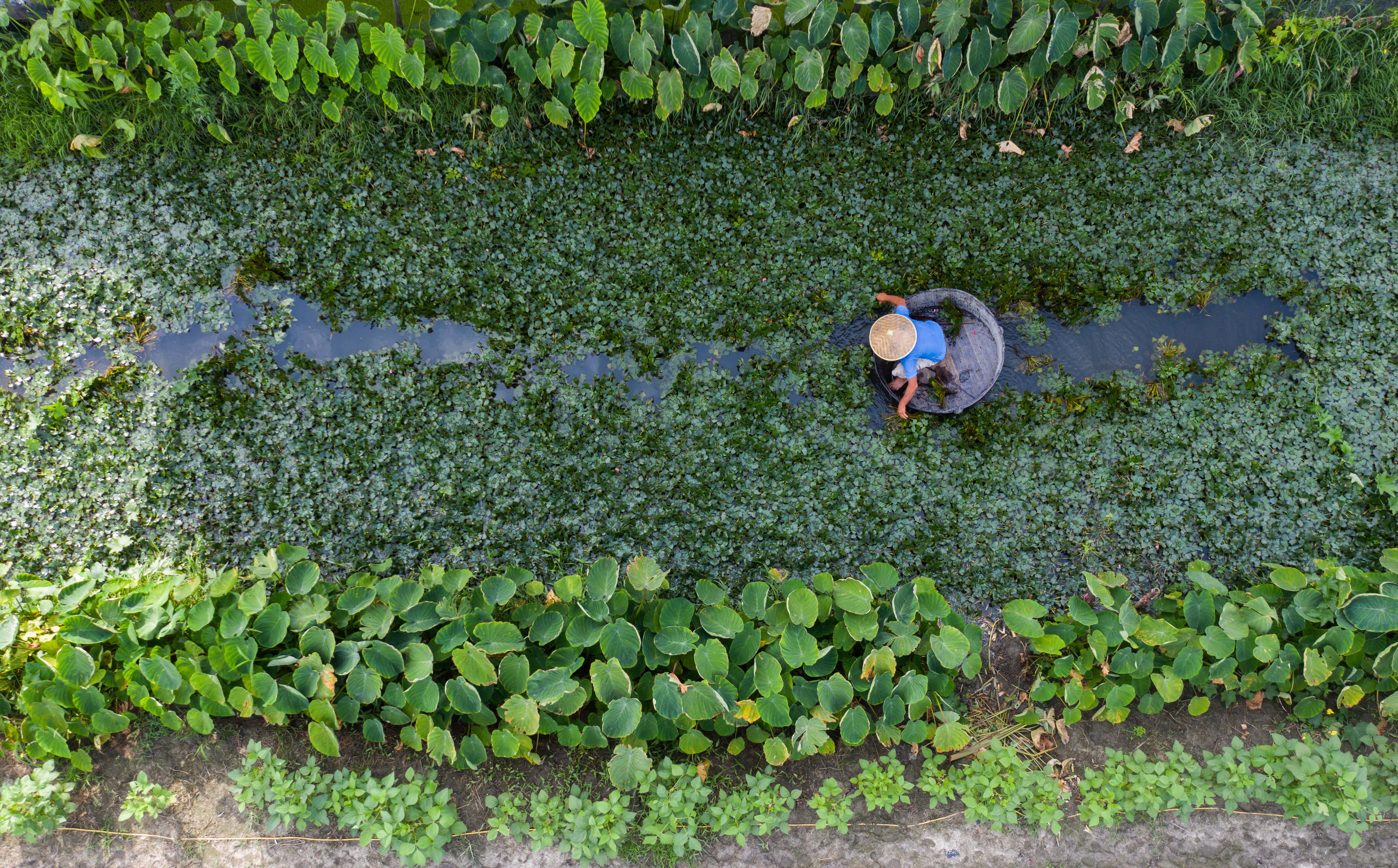 新华社照片,北京,2022年3月10日 两会·热点画报:巩固拓展脱贫攻坚成果 推动乡村振兴 浙江省湖州市吴兴区东林镇泉庆村的种植户在水塘里采收菱角(2021年8月25日摄,无人机照片)。 2022年是巩固拓展脱贫攻坚成果同乡村振兴有效衔接的关键一年。3月5日提请十三届全国人大五次会议审议的政府工作报告提出,大力抓好农业生产,促进乡村全面振兴。完善和强化农业支持政策,接续推进脱贫地区发展,促进农业丰收、农民增收。 代表委员在全国两会上就如何更好保障14亿多人“到点开饭”、如何守住不发生规模性返贫底线、乡村振兴如何发力等积极建言献策。 新华社记者 徐昱 摄