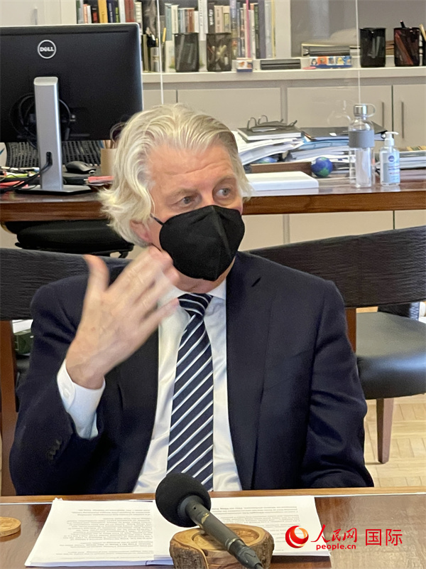 宾夕法尼亚大学韦茨曼设计学院院长弗利德里克·斯坦奈接受采访。人民网记者 李晓宏摄