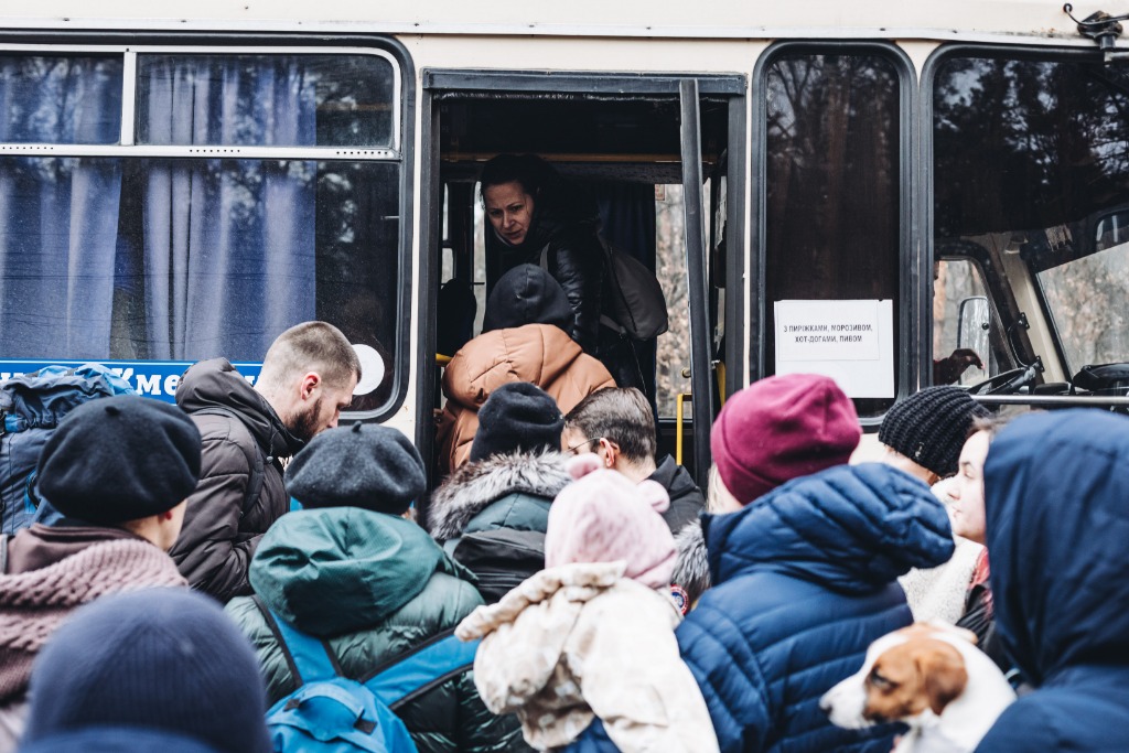 3月5日,民众经乌克兰基辅西部城镇伊尔平撤离。(新华社发,迭戈·埃雷拉摄)