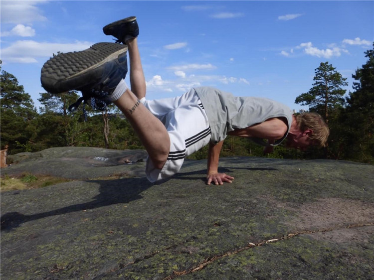 马蒂·赛拉宁在芬兰表演单手撑地动作。马蒂·赛拉宁供图