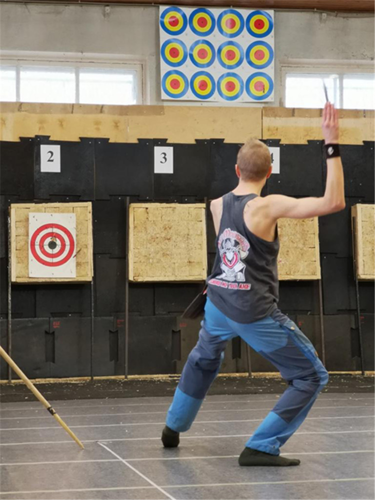 马蒂参加2018年长距离刀/斧投掷世界冠军赛。马蒂·赛拉宁供图