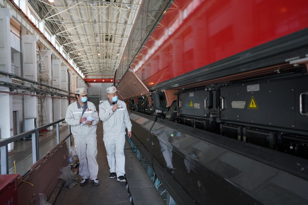 3月6日,中车株机工作人员在检查商用磁浮3.0版列车状态。(新华社发)