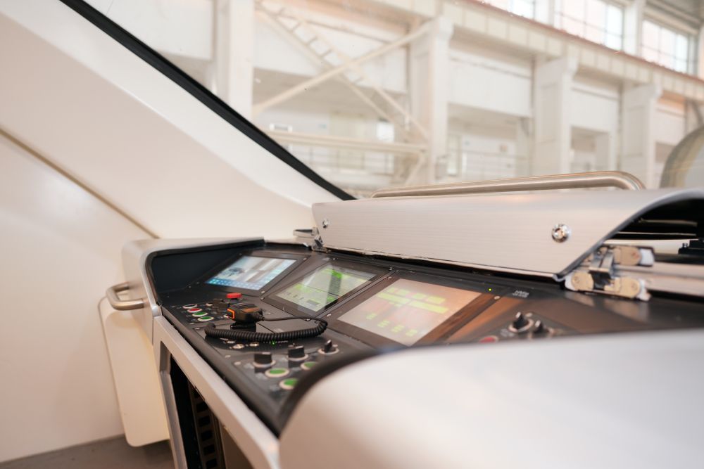 这是3月6日拍摄的商用磁浮3.0版列车的驾驶室内部。(新华社发)