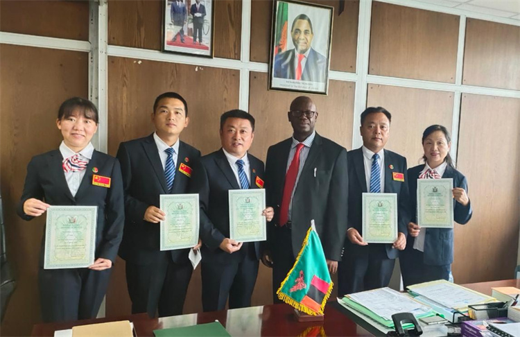 人民网约翰内斯堡3月10日电 (记者闫韫明)为感谢中国援赞比亚第22批医疗队自2020年12月至2022年1月期间在医疗援助工作中所做出的突出贡献,赞比亚卫生部特授予该批中国医疗队28名队员“援赞卓越贡献奖”(Extraordinary Service in Zambia)。3月9日上午,赞比亚卫生部常秘(副部长)拉克逊·卡松卡(Lackson Kasonka)在其办公室亲自把荣誉证书颁给医疗队代表赵海源、杨清平、李杰、宋振和李燕杰。