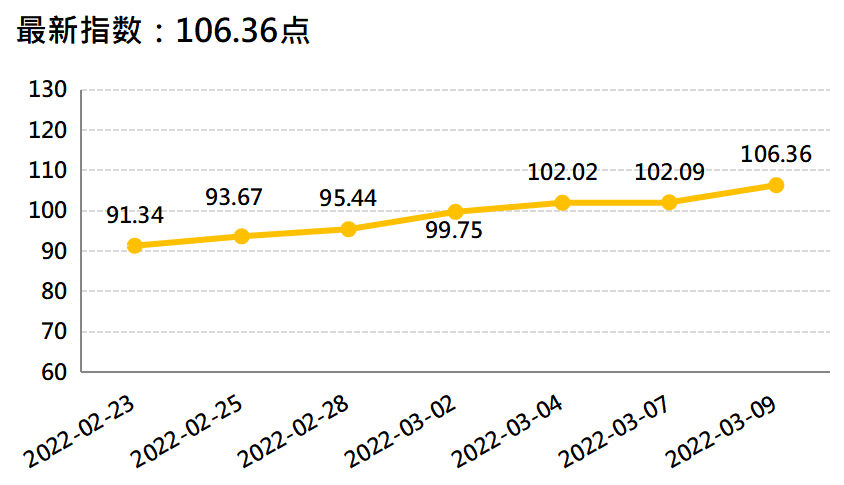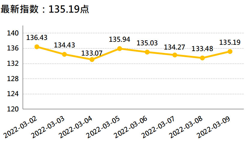 数据显示,截至3月9日,国内香蕉产地价格指数报106.36点,较上一发布日(3月2日,下同)99.75点上涨6.63%;香蕉销地批发价格指数报135.19点,较上一发布日136.43点下跌0.91%;进口蕉价格指数报1070.50点,较上一发布日1057.72点上涨1.21%;皇帝蕉产地价格指数报1543.67点,较上一发布日1364.24点上涨13.15%。