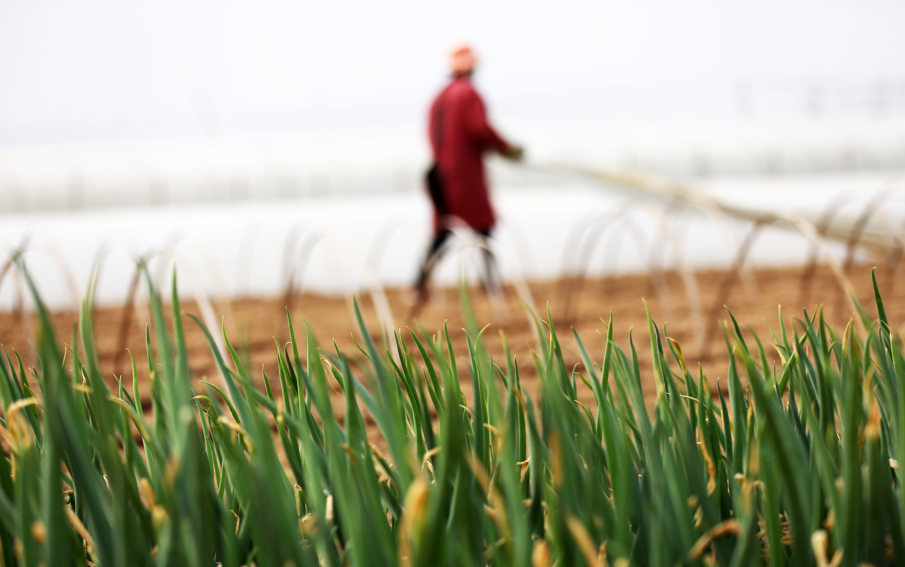 新华社照片,临沂(山东),2022年3月10日 春日农忙 3月10日,山东省临沂市郯城县郯城街道农民在田间劳作。 随着天气转暖,各地农民抢抓农时开展春耕生产,乡村田野里一派农忙景象。 新华社发(张春雷摄)