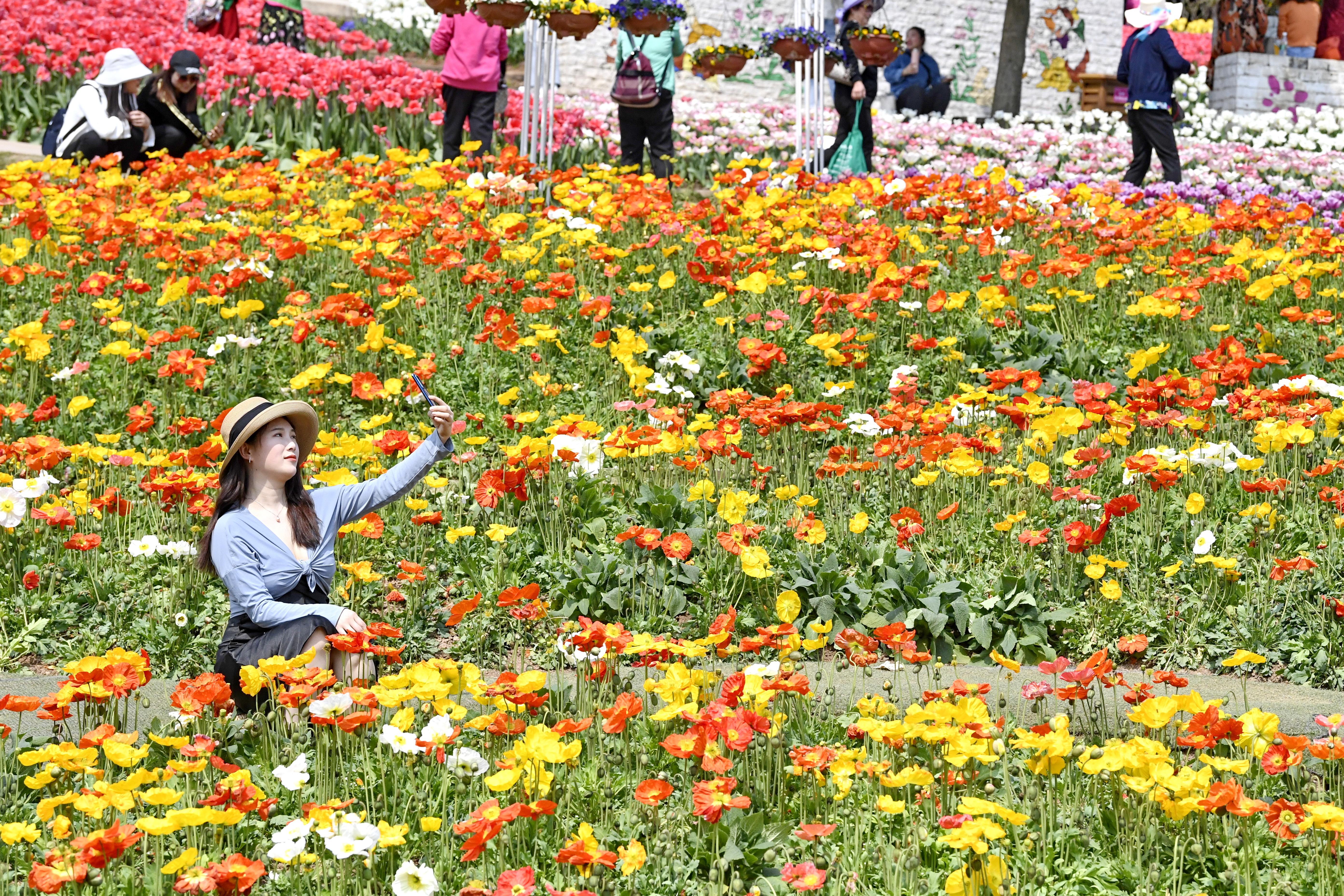新华社照片,成都,2022年3月10日 拥抱春天 3月10日,游客在成都市新都区漫花庄园拍照留念。 春暖花开,人们纷纷走出家门,踏青赏花,拥抱春天。 新华社发(李向雨 摄)